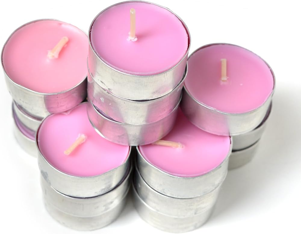 Materials - Tealight candles made of paraffin wax and 100% pure cotton wicks.