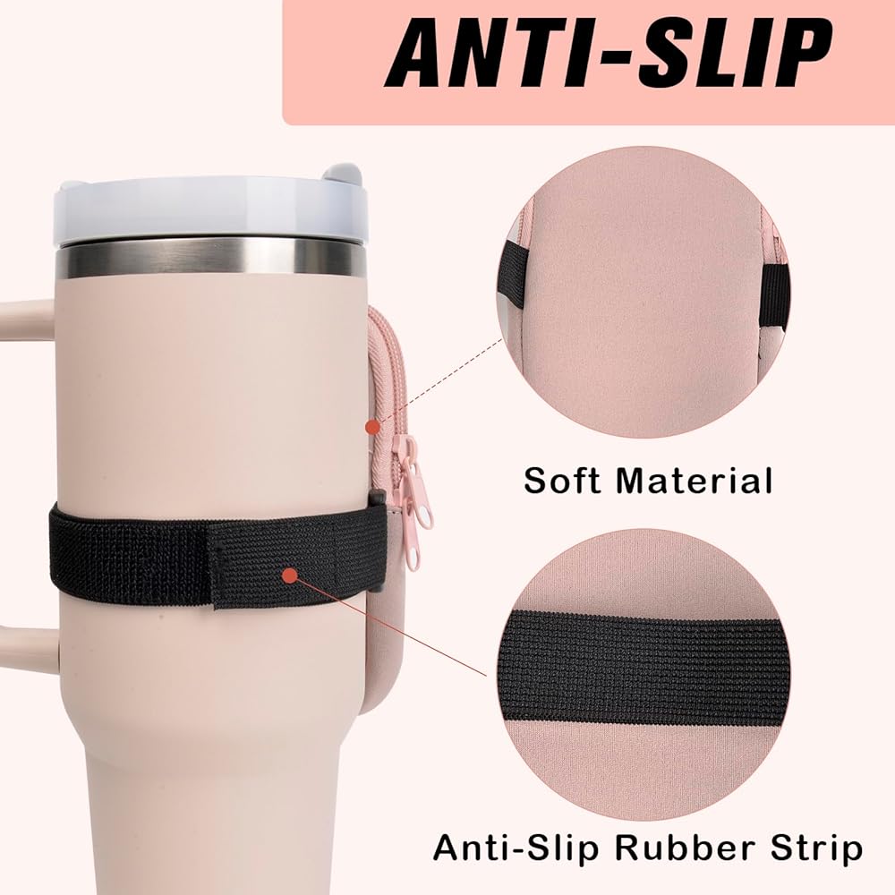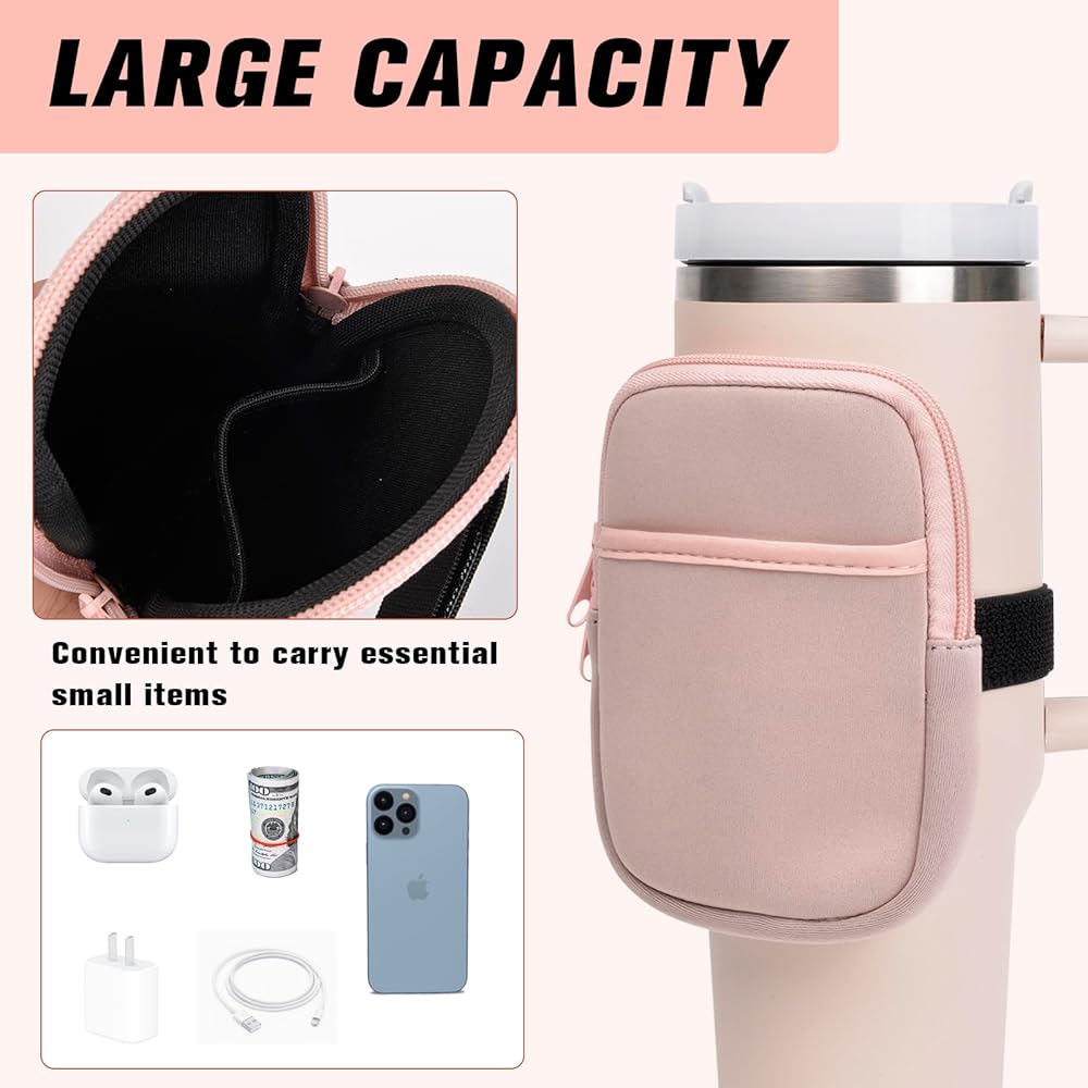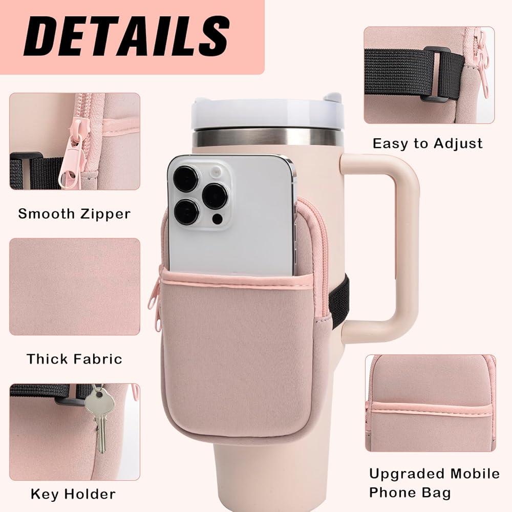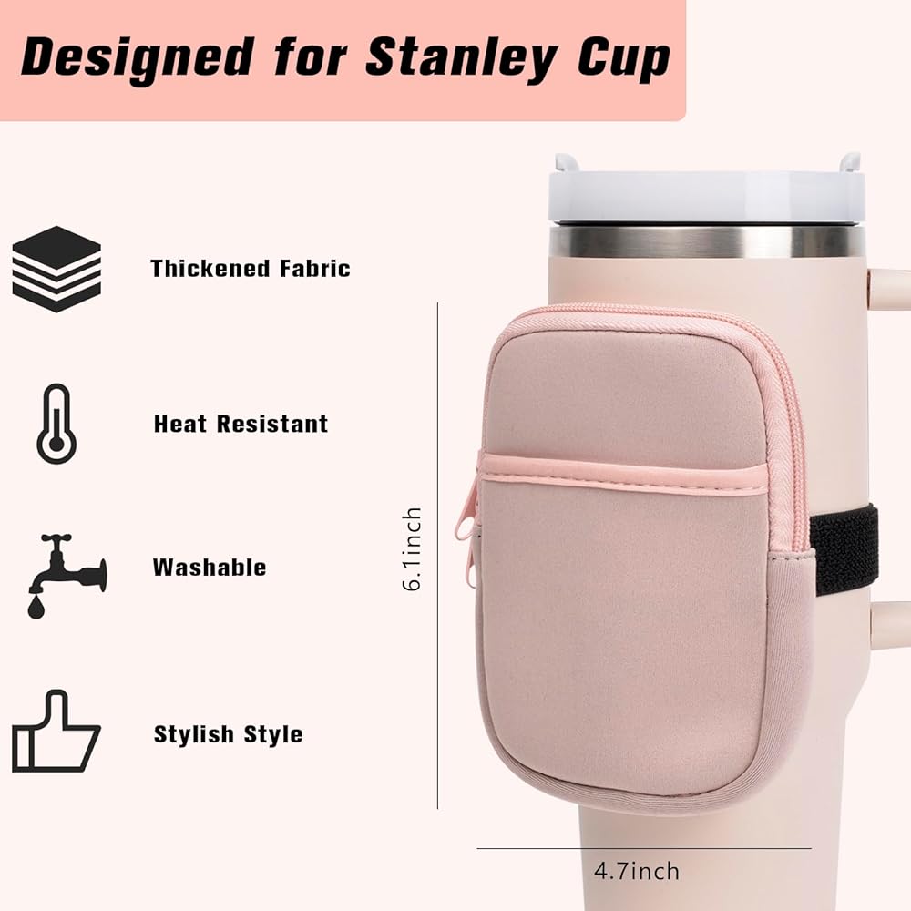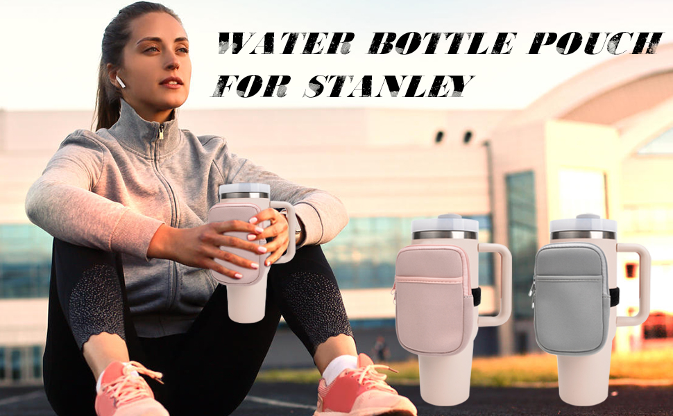 حقيبة زجاجة مياه لمغامرة ستانلي كوينشر 40 أونصة، قطعتان من أكياس الأكواب مع جيب، حقيبة محمولة لزجاجة المياه للهاتف الخلوي/البطاقة/المفتاح، ملحقات الجري في صالة الألعاب الرياضية لكأس ستانلي