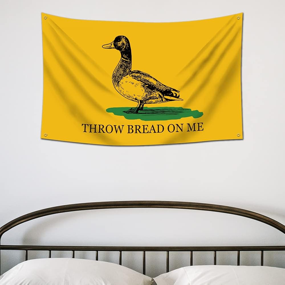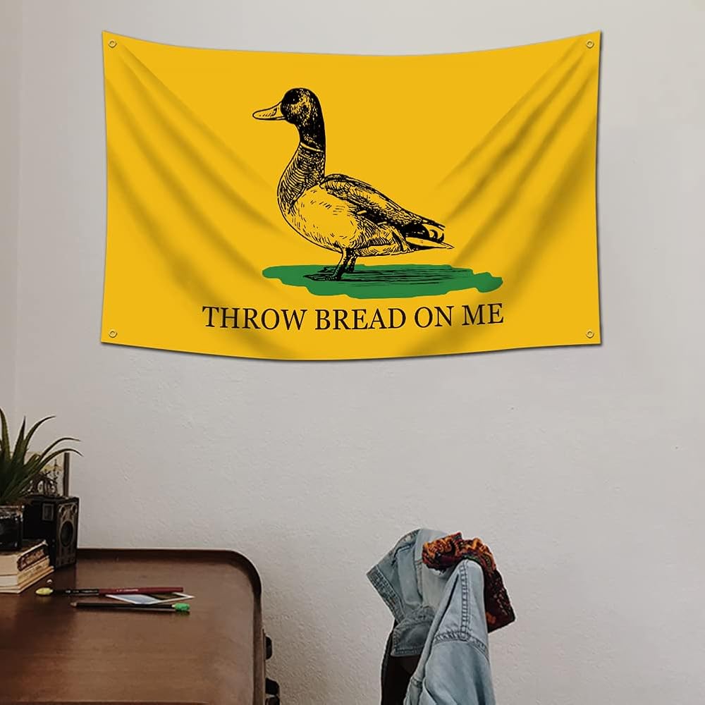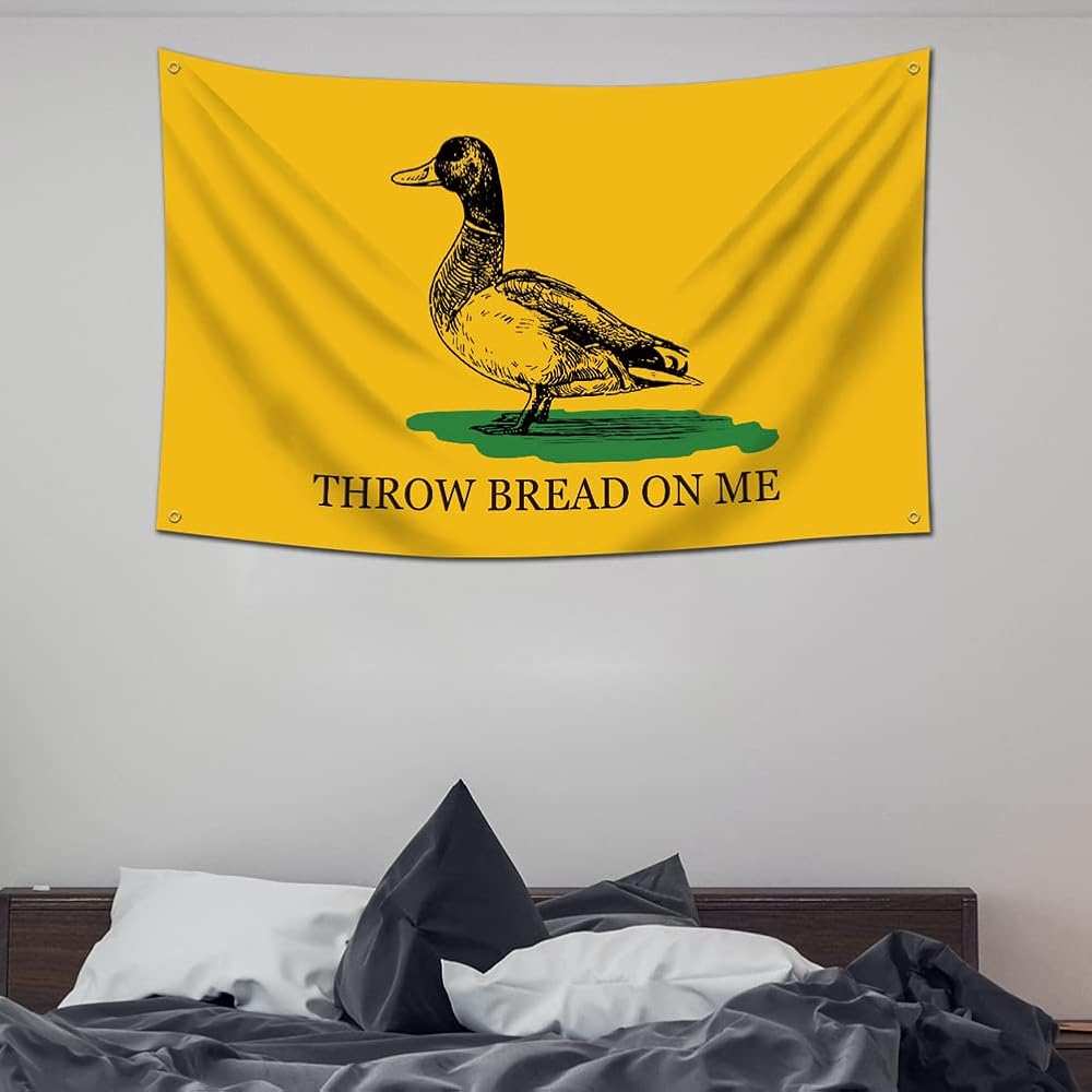 رمي الخبز علي العلم لرجال الغرفة، لافتة مقاس 3 × 5 أقدام، ملصق مضحك علم جدار كهف رجل متين مع 4 حلقات نحاسية لديكور غرفة النوم الجامعية، حفلة خارجية