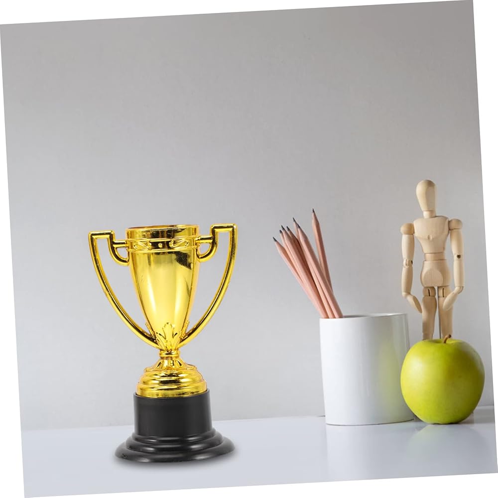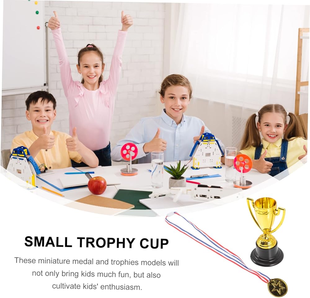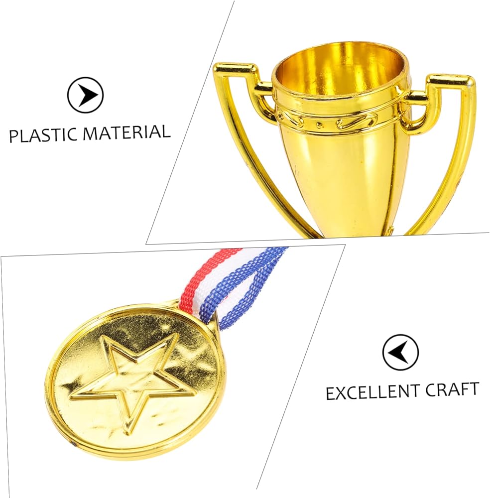 INOOMP 8 قطع من الأكواب الذهبية البلاستيكية الصغيرة جوائز وجوائز تذكارية ميداليات المركز الأول للأطفال، لعبة جوائز للأطفال، ميداليات تذكارية للحفلات للأطفال، ألعاب الأطفال السائبة، ملحقات الأطفال