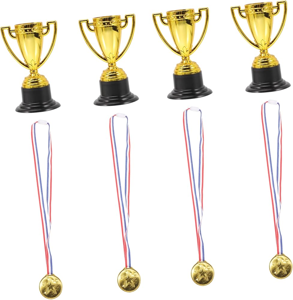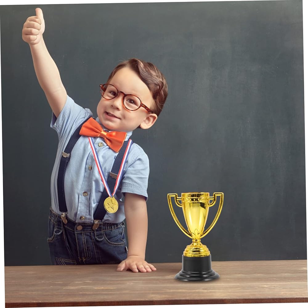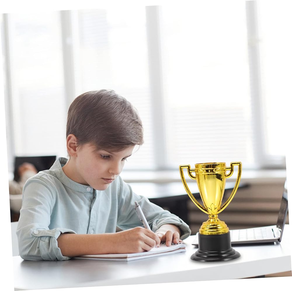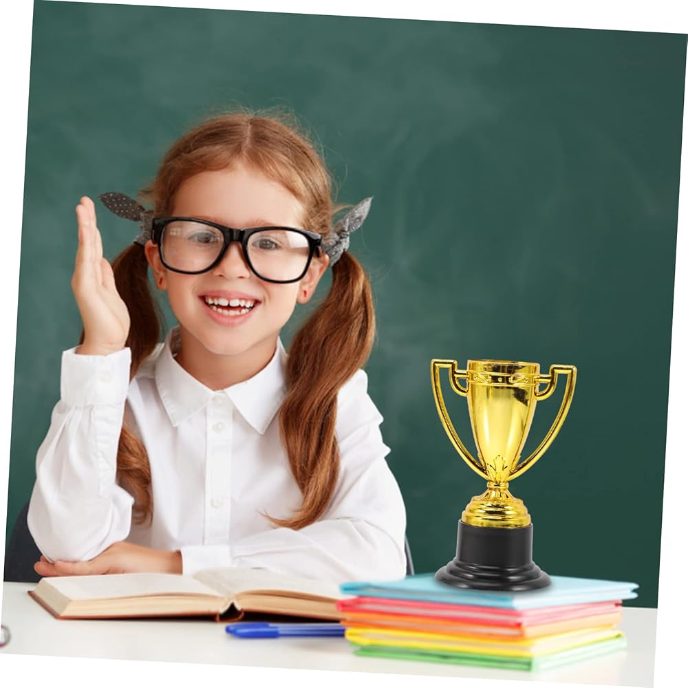 INOOMP 8 قطع من الأكواب الذهبية البلاستيكية الصغيرة جوائز وجوائز تذكارية ميداليات المركز الأول للأطفال، لعبة جوائز للأطفال، ميداليات تذكارية للحفلات للأطفال، ألعاب الأطفال السائبة، ملحقات الأطفال