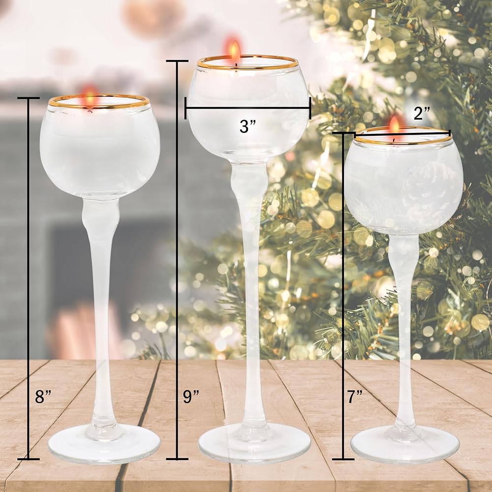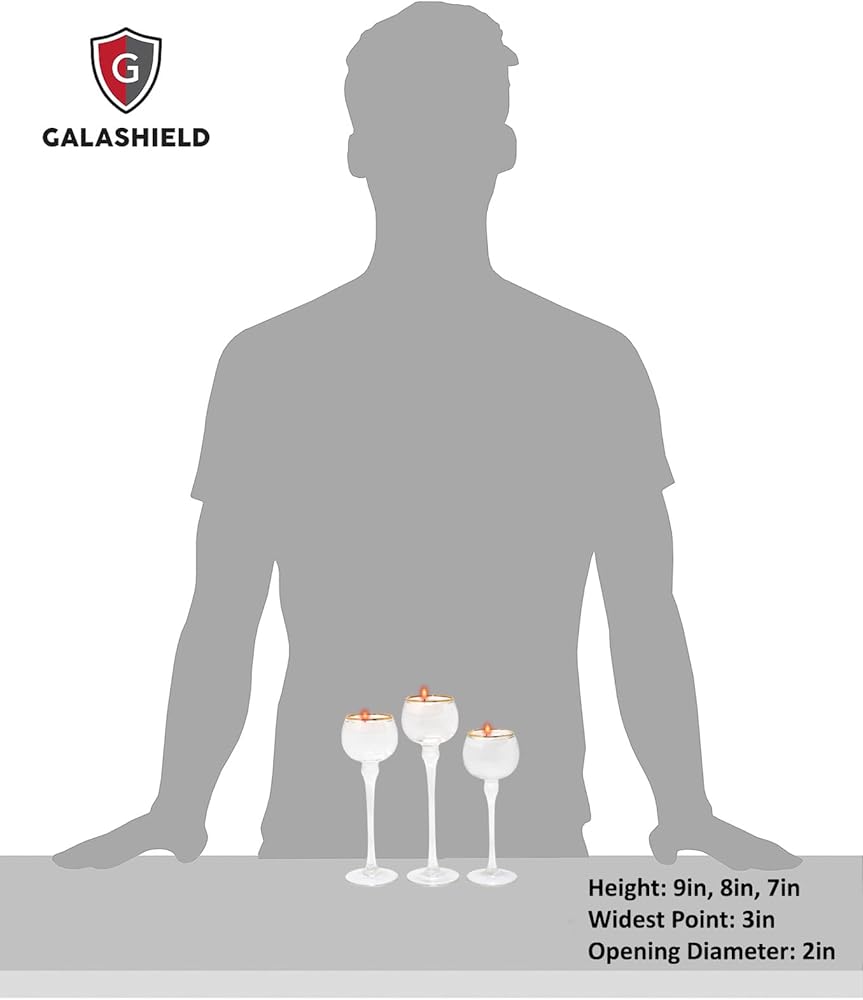 التدابير - 9 بوصات، 8 بوصات و 7 بوصات. تتميز الأوعية الزجاجية بفتحة بعرض 5.08 سم ويمكنها حمل الشموع العائمة والشموع الوامضة LED بشكل مريح.