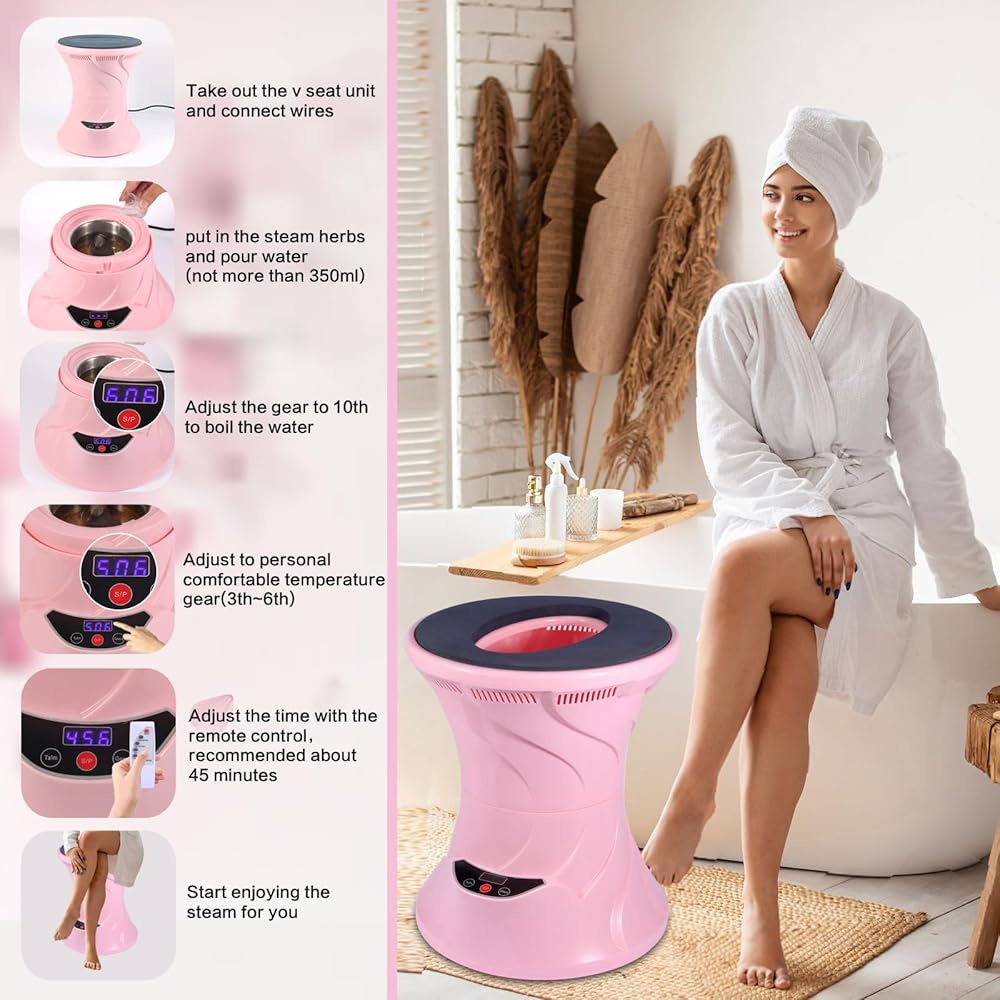 Discover the pinnacle of women's health and relaxation with our V Steam Yoni Seat Therapy Seat. This state-of-the-art device is designed to provide a sanctuary of comfort and care in the privacy of your own home. Whether you're seeking a rejuvenating respite from the day's rigors or a dedicated self-care routine, our V Steam Seat has you covered. Precise Smart Temperature Control: Experience the epitome of customization with our 1-10 gear temperature adjustment and 1-60 minute timer. The intuitive remote control allows you to set the perfect steam warmth and duration for your individual needs. Gone are the days of one-size-fits-all steam therapy; with our V Steam Yoni Seat, your comfort is in your hands. Comfortable Yoni Seat Cushion Design: We've crafted an ergonomic cushion that not only supports up to 250 lbs but also cradles you in comfort throughout your steam session. Whether you choose the tranquility of your room or the serenity of your bathroom, our V Steam Seat ensures a posture that's as good for your body as it is for your peace of mind. Efficient Rapid Heating with Safety Features: Our 350ml detachable stainless steel heating bowl is the heart of the V Steam Seat, boiling water within minutes to envelop you in a healing cloud of steam. Rest easy with the built-in anti-dry protection feature, which not only ensures safe usage but also gives you the freedom to relax without worry. Versatility for Daily Use: The V Steam Seat Therapy Seat transcends the boundaries of traditional steam therapy. It's not just an intimate female care device; it's a daily relaxation and personal hygiene essential. Whether you're winding down from the day or ramping up your self-care game, our seat is the cornerstone of a quality home life. The Perfect Companion for Women's Self-Care: Embrace the V Steam Seat Kit as the cornerstone of your self-care arsenal. It's more than just a tool; it's a commitment to maintaining intimate pH balance and overall wellness. A thoughtful gift for yourself or a loved one, our V Steam Seat turns daily care into a ritual of simplicity and enjoyment. Indulge in the V Steam Yoni Seat Therapy Seat and elevate your self-care to new heights. For health-conscious women who demand the best, our V Steam Seat is the ultimate companion on the journey to optimal wellness.