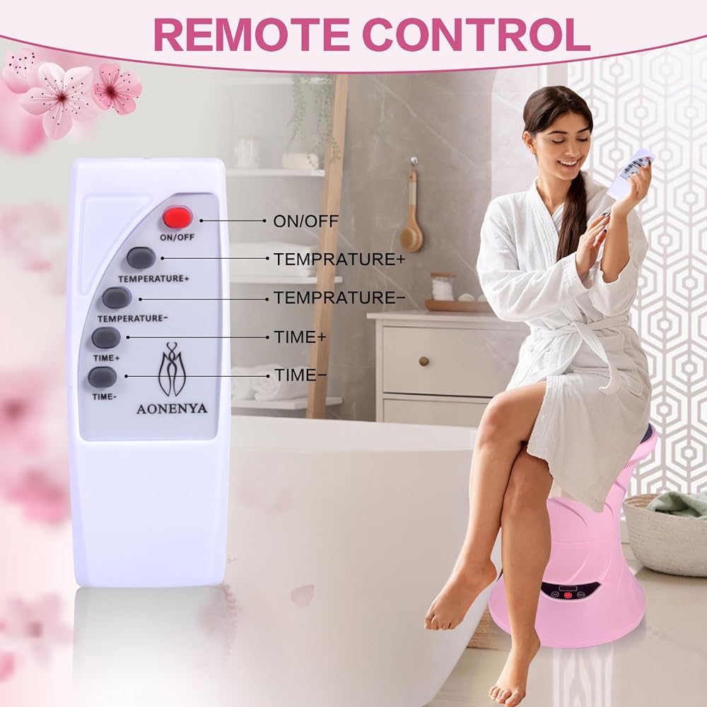 Precise Smart Temperature Control: This v steam yoni seat therapy seat features a 1-10 gear temperature adjustment and a 1-60 minute timer, allowing users to precisely control the steam's warmth and duration through a convenient remote control for a personalized steam care experience. It adds dual control design of temperature and time to the traditional seat