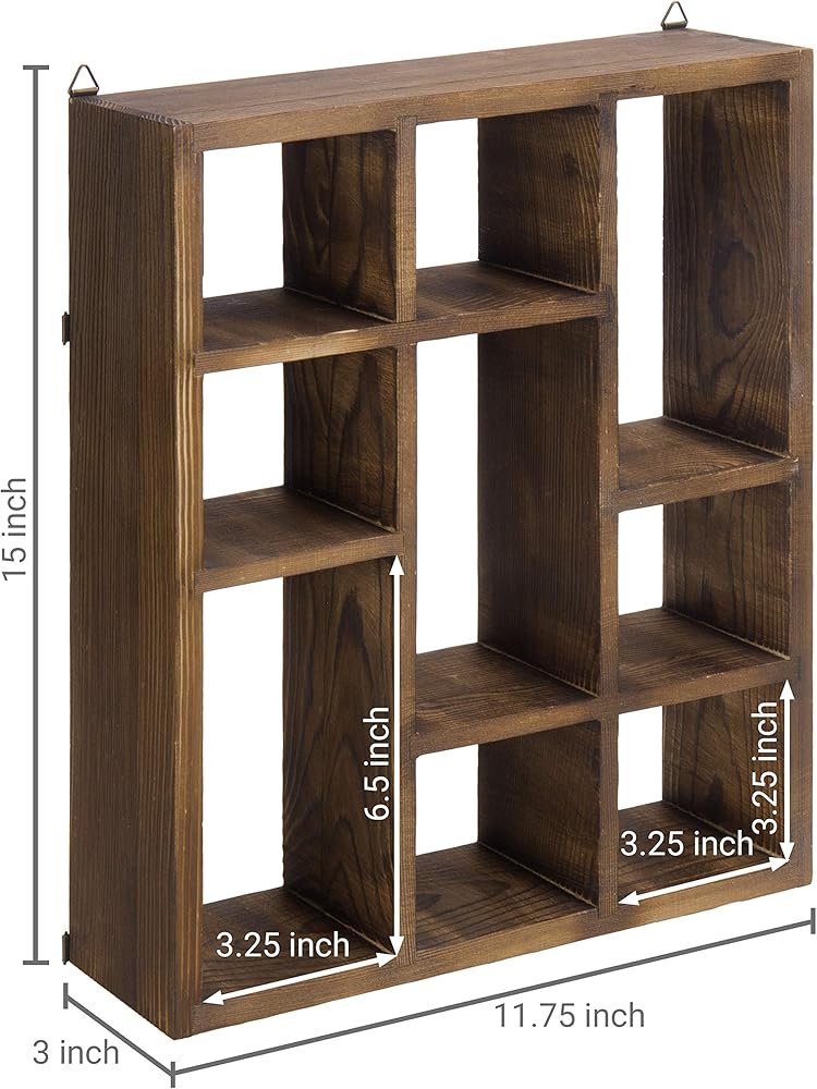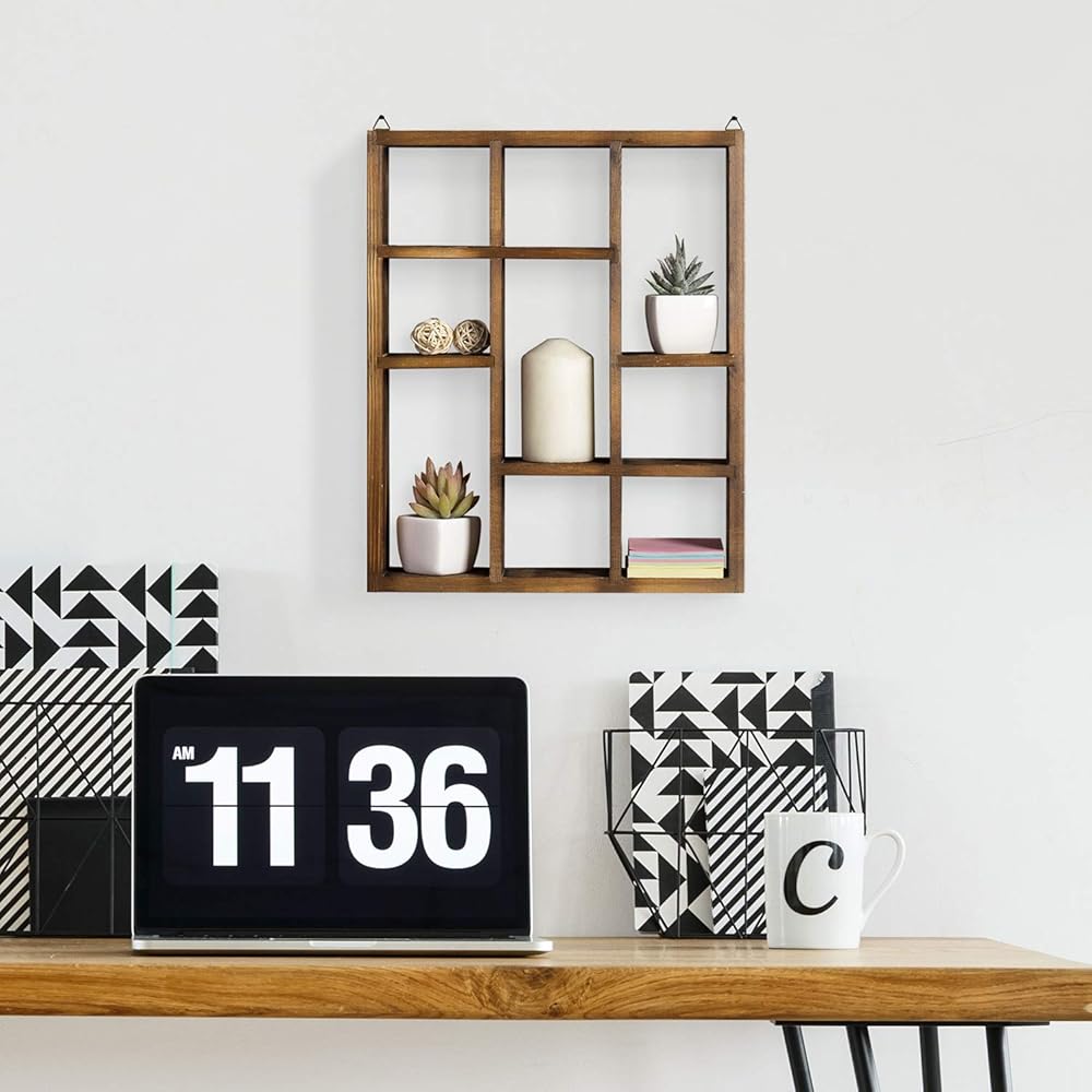 تتميز بـ 9 مساحات من 6 فتحات مربعة و3 فتحات مفتوحة مستطيلة، مثالية لحمل الزينة والألعاب والجوائز والتحف، بالإضافة إلى النباتات الحية أو الاصطناعية بأحجام مختلفة.