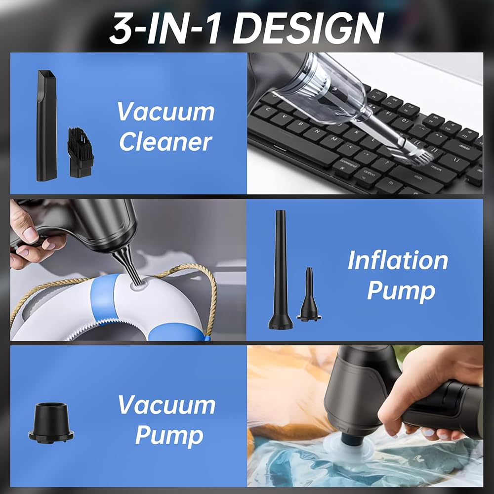 ✅ 3-In-1 Versatile Vacuum Cleaner: This handheld device effortlessly transitions between home, office, car, and bathroom cleaning tasks. Ideal for carpets, keyboards, and computer units, it doubles as an inflation pump for swim rings and serves as a vacuum pump for clothes, mattresses, blankets, and pillows. Elevate your cleaning experience with multi-functional convenience.