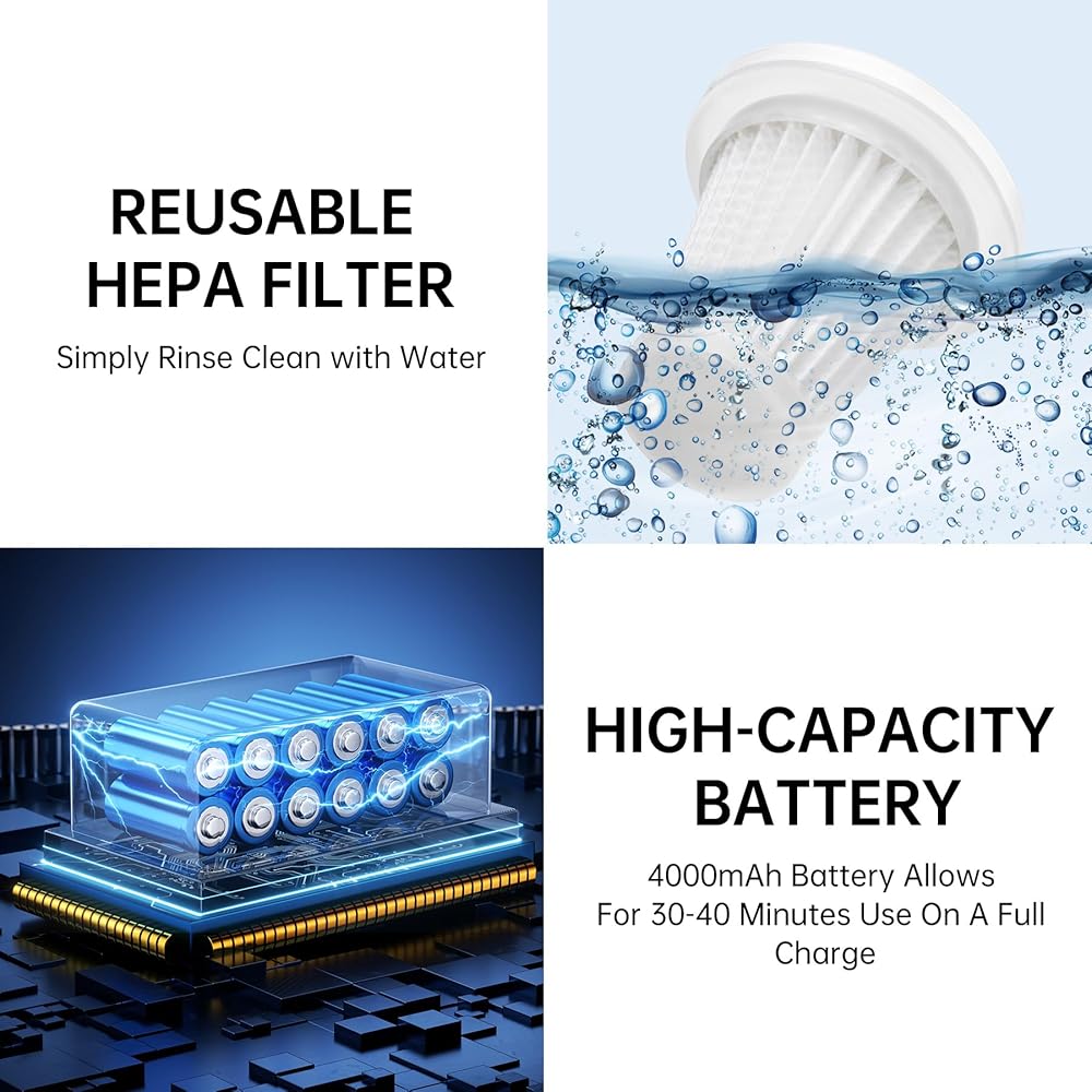 ✅ Streamlined Cleaning With A HEPA Filter: This vacuum cleaner comes equipped with a filter. Boasting powerful suction capabilities, it efficiently picks up pet hair, minute dust particles, and even handles minor liquid spills. The HEPA filter in this compact vacuum is both washable and reusable, ensuring sustained suction performance with regular cleaning.