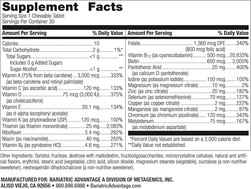 Once-Per-Day Multivitamin: A high potency one-a-day multivitamin delivering key nutrients for bariatric patients