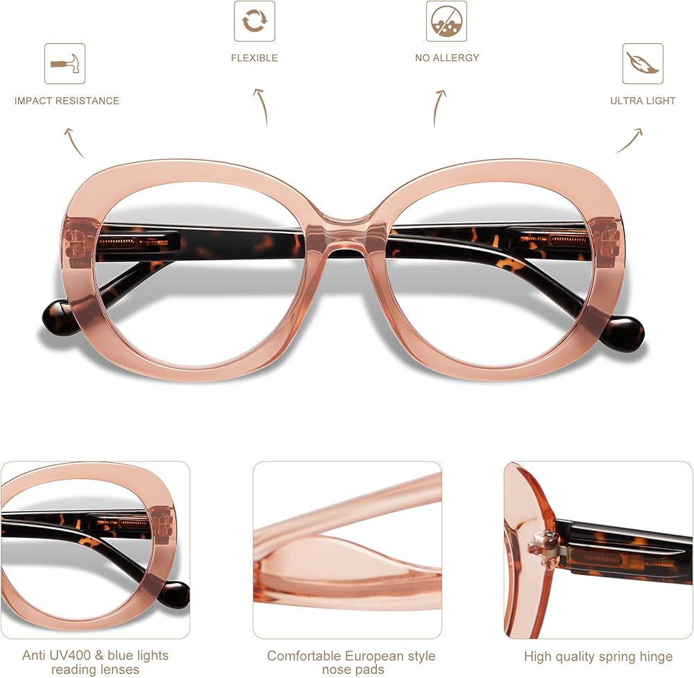 مانع الضوء الأزرق وعدسات UV400، يخفف من التعب البصري وعدم الراحة الناتج عن تصفح الهواتف المحمولة والأجهزة اللوحية والألعاب والعمل تحت أضواء الفلورسنت مع حماية من الأشعة فوق البنفسجية فئة A وB وتقليل الوهج.