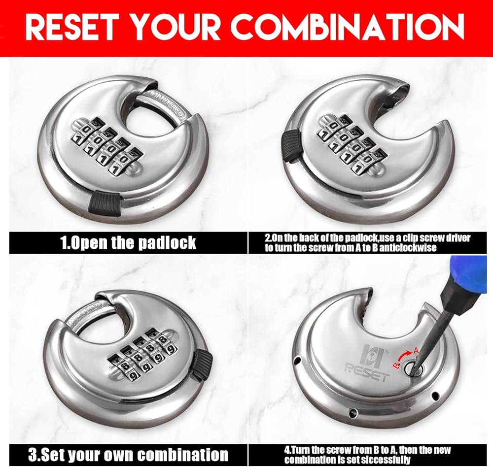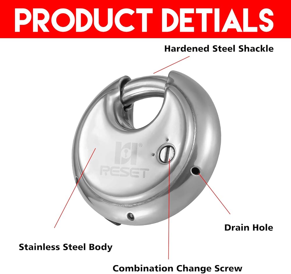 【Heavy Duty】The stianless steel waterproof combination discus lock minimizes shackle exposure and protects against bolt cutter attacks