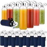 Our 12 piece set of reusable juice bottles glass with lids come with matching protection sleeves in 12 assorted colors. The sleeves not only provide additional insulation but also allow you to color coordinate with your mood or your juice selection. Mix and match as you like, it's up to you.