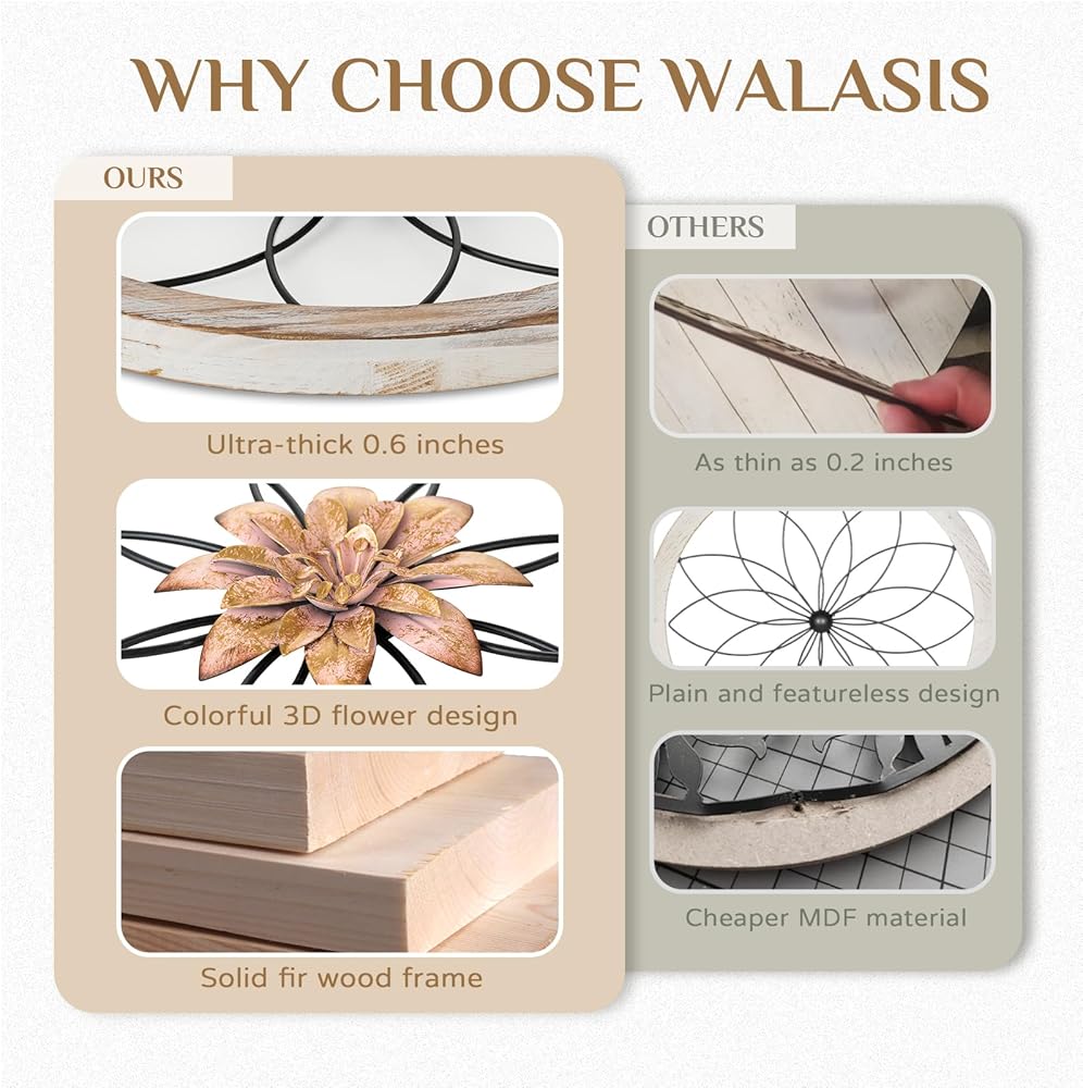 Whether you are looking to add a touch of elegance to your any space or want to create a classy farmhouse feel, Walasis' metal flower wall decor is the perfect choice. The lightweight structure makes it easy to hang, and it will instantly transform your house into a welcoming and stylish haven.