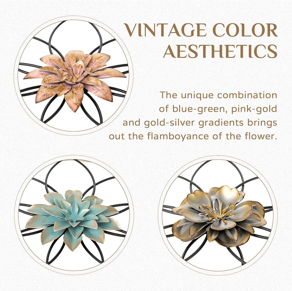 Introduce a touch of aesthetic charm to your living space with Walasis' vintage 3D metal flower wall decor set of 3. Embrace the shabby-chic vibe and create a cozy and bohemian atmosphere in your home. This unique piece of decoration is perfect for adding a touch of rustic elegance to your livingroom, corner, door, salon, stairway, entrance, basement or fireplace.
