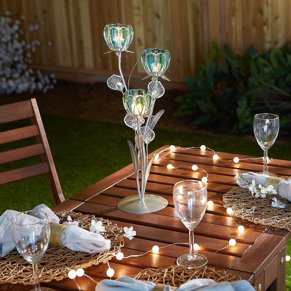 Accent Plus Candle Holder Christmas Decorations Indoor Outdoor Home Decor Peacock Bloom Tabletop Candle Holders Christmas Candle Holder Wedding Centerpiece Tealight Candle, 7 X 5.25 X 18.5 Inches