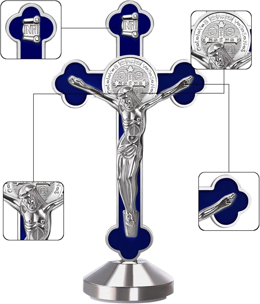 تصميم كلاسيكي: يبلغ طول الصليب القائم 7.62 سم، مصنوع من سبائك الزنك والمينا، وملصقات قوية في الأسفل. المزيج المثالي بين وسام القديس بنديكت والصلب يسمح لك بالصلاة أثناء الحصول على الحماية القوية والتوجيه من القديس بنديكت. إنه الديكور المثالي الصغير لملء أي مكان في منزلك، سواء كان كبيرًا أو صغيرًا. كما أنه رائع أيضًا ضعه على مكتبك، بجوار جهاز الكمبيوتر الخاص بك أو على مذبح منزلك كتذكير صغير بإيمانك أثناء العمل والصلاة.