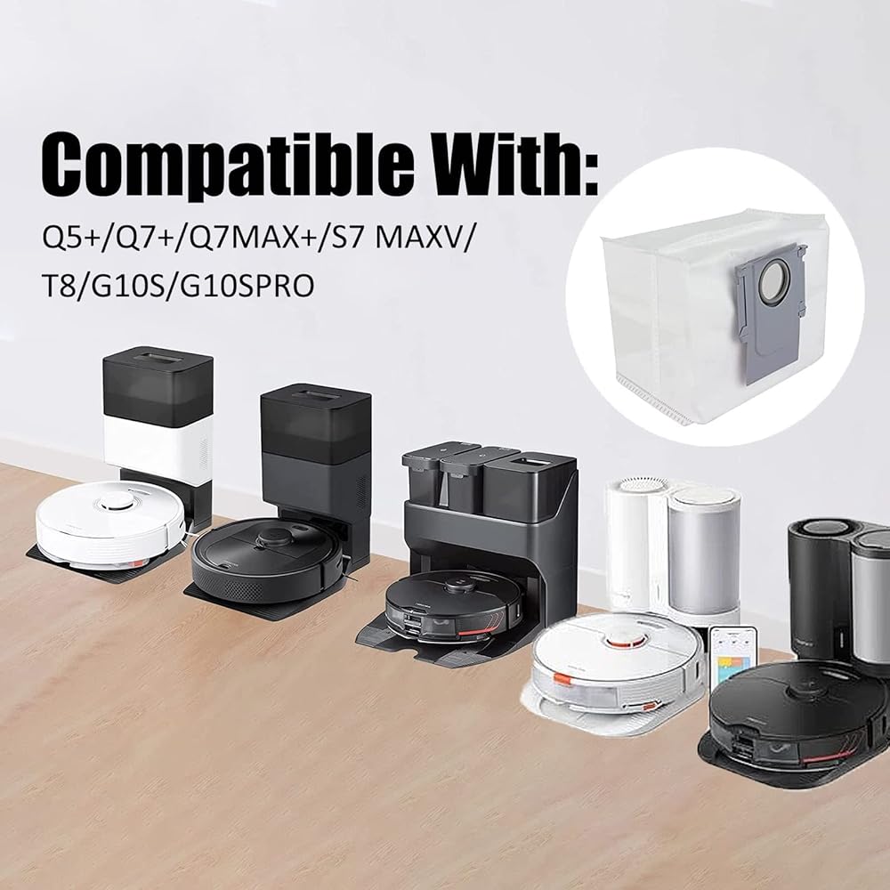 10 قطع أكياس غبار Roborock S7 Maxv Ultra، كيس غبار Roborock قابل لإعادة الاستخدام متوافق مع Roborock Q5/Q5+/Q7/Q7+/Q7 Max+/S7 MAXV/T8/G10S/G10SPRO قاعدة فراغ ذاتية التفريغ، ملحقات Troborock S7 Pro Ultra