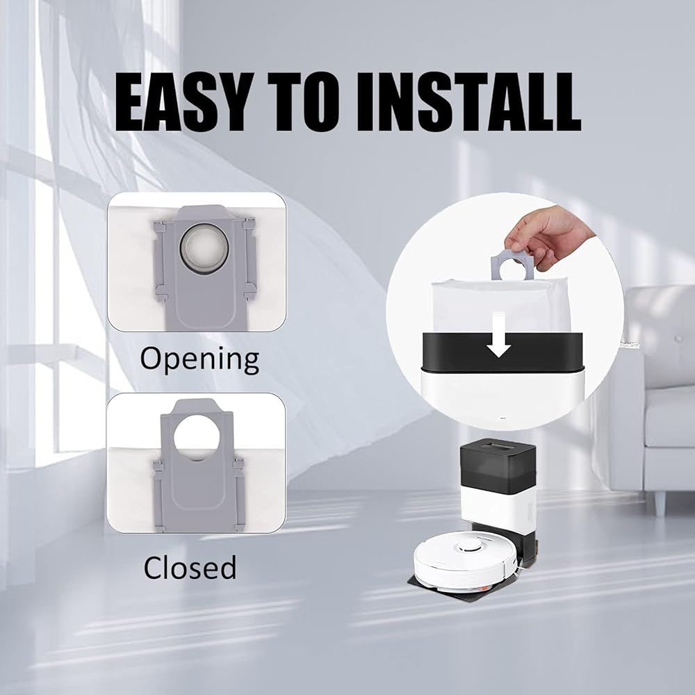 【EASY TO INSTALL】:Since our replacement accessories are well-compatible with your Roborock, you can easily install and use, each bag holds 30 boxes of dirt and debris, easy to clean and a comfortable place for you .