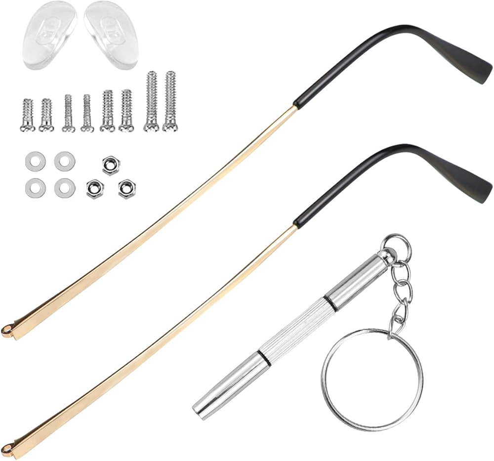 زوج واحد من أذرع استبدال النظارات المعدنية، استبدال ذراع أرجل النظارات العالمية - أرجل أذرع النظارات، براغي، غسالات لولبية، هيكل بديل للنظارات المعدنية لإصلاح النظارات