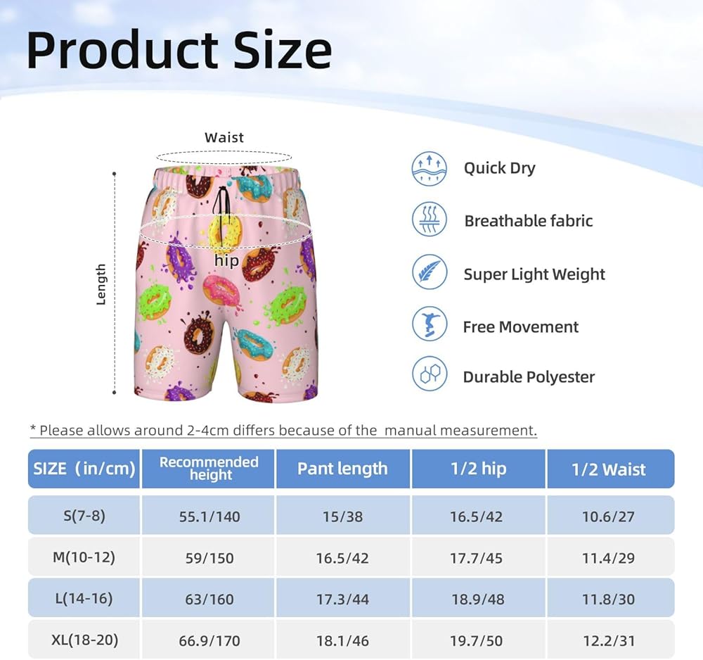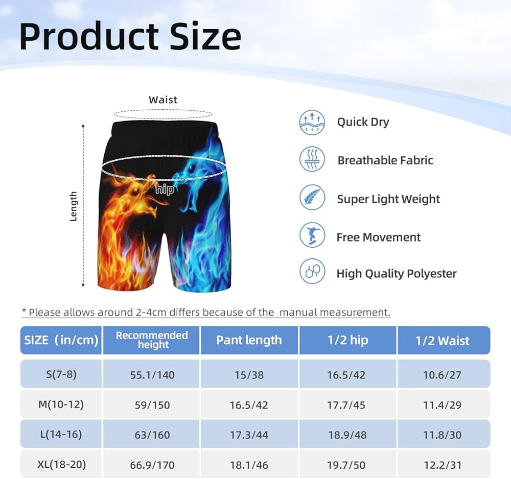 We have many theme pattern swim shorts, such as cute cats, dogs, dinosaurs, sharks, pandas, foxes, cool dragons; Summer Hawaiian style swim shorts, tropical, palm trees; Cute fruit beach shorts, pineapples, strawberries, lemons; Children's transportation pattern swim shorts, cars, excavator and so on, welcome to come in to the store to store for your favorite ones! Swim Trunks for Boys Kid Teens Youth Little Boys which is very comfortable, soft compression liner protects your skin from scratches and prevents the shorts from sticking to your skin when they get wet. Boys Swim Trunks Sizes 10-12 14-16 8-10 , The boys swimming trunks come in eight sizes for 7 to 20 years old. The age is only for reference, you can choose sizing according to the actual shape of your child. Boys Swim Trunks with Boxer Brief Liner Compression Bathing Suits, 3 pockets, right side lining with a patch pocket, and 2 side deep pockets Beach Boards Shorts with elastic waistband and adjustable drawstring