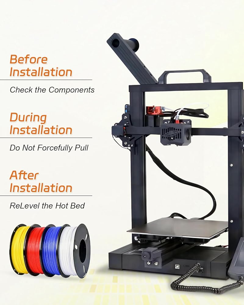 ملاحظة خاصة لمجموعة الأطراف الساخنة المجمعة للطابعة ثلاثية الأبعاد: للتأكد من أنه يمكنك استخدام الطابعة بشكل أفضل، يوصى بالتحقق مما إذا كانت جميع الأجزاء مشدودة وإعادة مستوى السرير الحراري قبل الاستخدام.