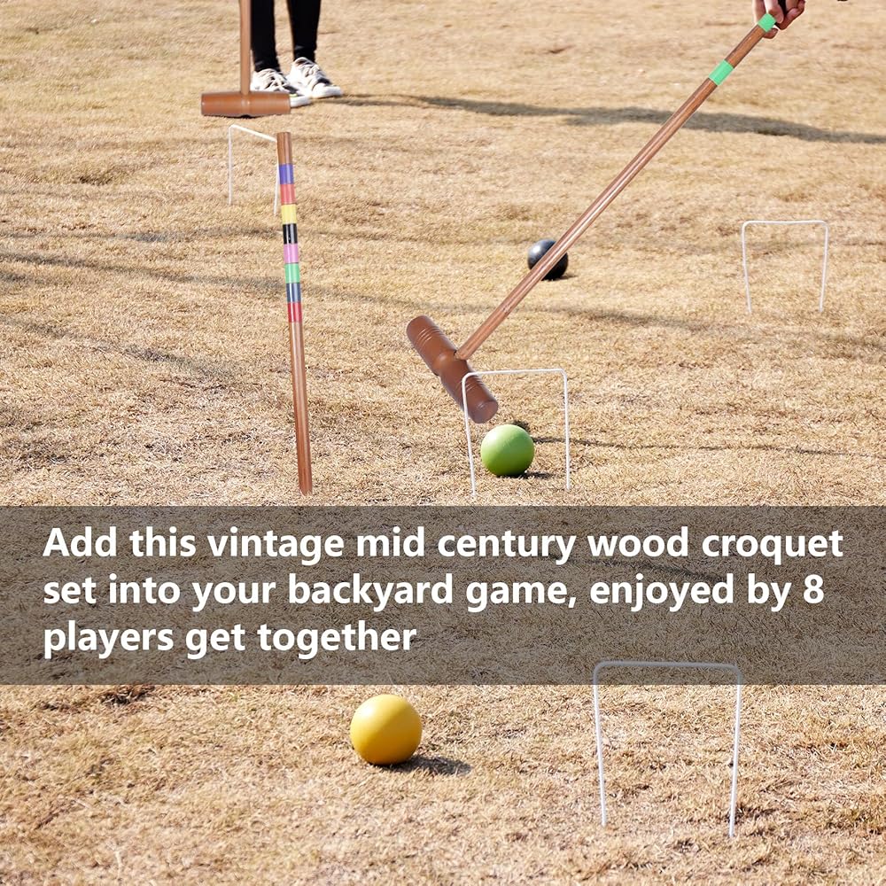 مجموعة كاملة مكونة من 8 لاعبين: مثالية للتجمعات العائلية والحفلات والمرح في الفناء الخلفي. تتضمن مطارق ذات أحجام مختلطة، وكرات ملونة، وفتائل، وحقيبة حمل.