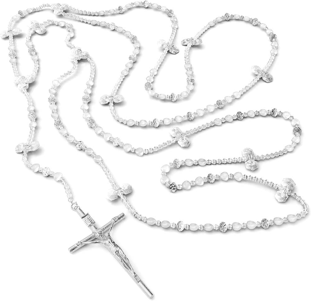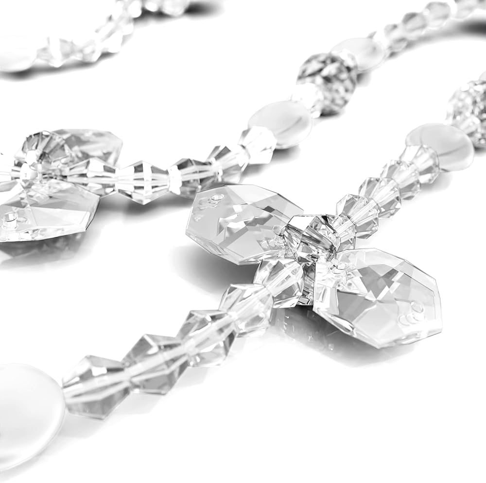 • Beautiful and Timeless - Featuring two oversized rosaries joined at the center, designed with frosted heart shaped crystals and clear beads interconnected by metal chain and crucifix pendant. It is sure to give your special day a unique traditional touch