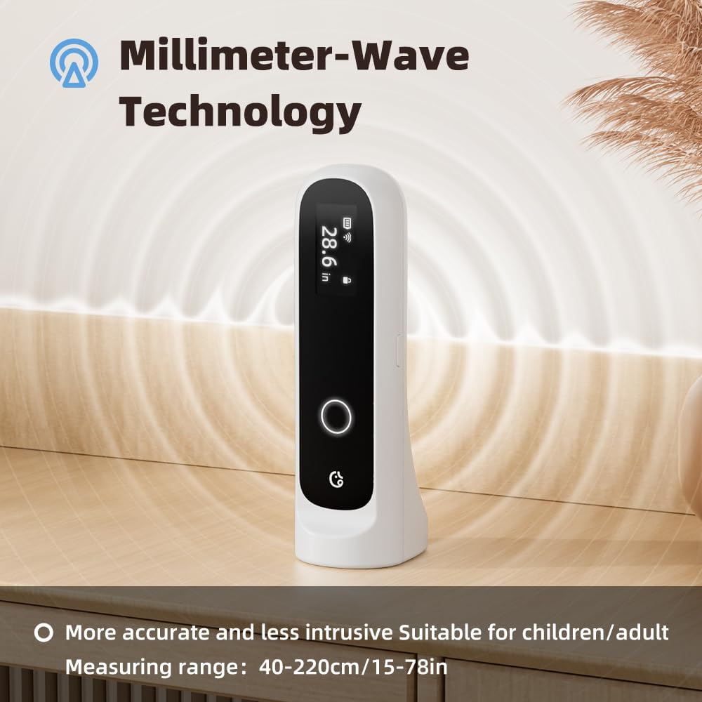 • 【تقنية موجة المليمتر】 - يمكن لأداة قياس الارتفاع الدقيقة هذه قياس ارتفاع الأطفال والكبار دون أي إزعاج، ويمكن لوحدتها أن تصل إلى دقة المليمتر. عند تحويلها إلى وحدة عامة، يمكن توفير نطاق واسع من القياسات من 15 بوصة إلى 78 بوصة أو 40 سم إلى 220 سم.