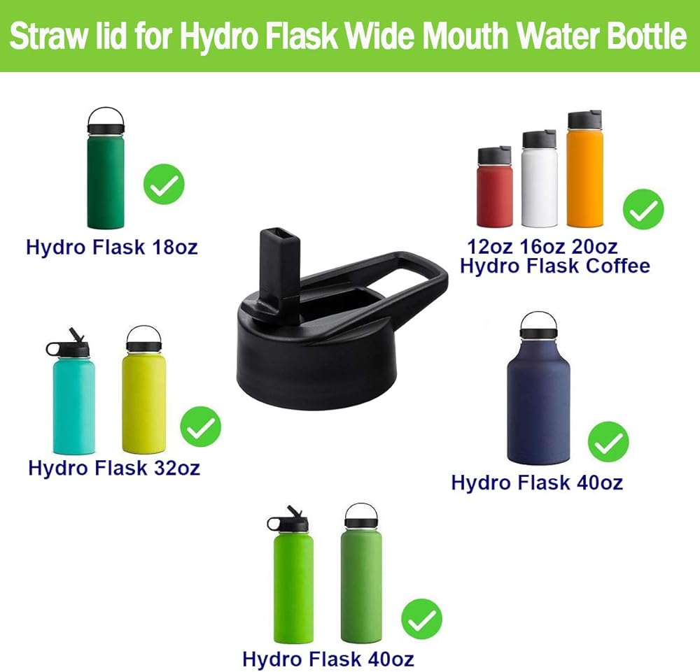 Straw lid for hydroflask wide mouth water bottle and other similar thread WIDE MOUTH water bottles of BELOW BRANDS AND SIZES ONLY, compatible with