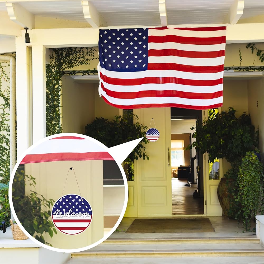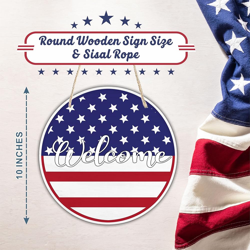• PACKAGE INCLUDED: You will receive 1 round patriotic wooden sign & 1 sisal rope, convenience to decorate your space.