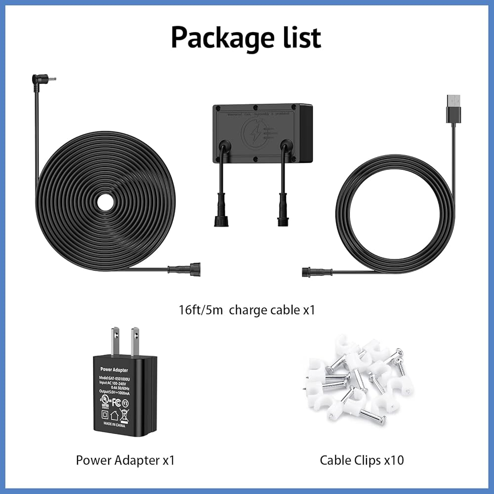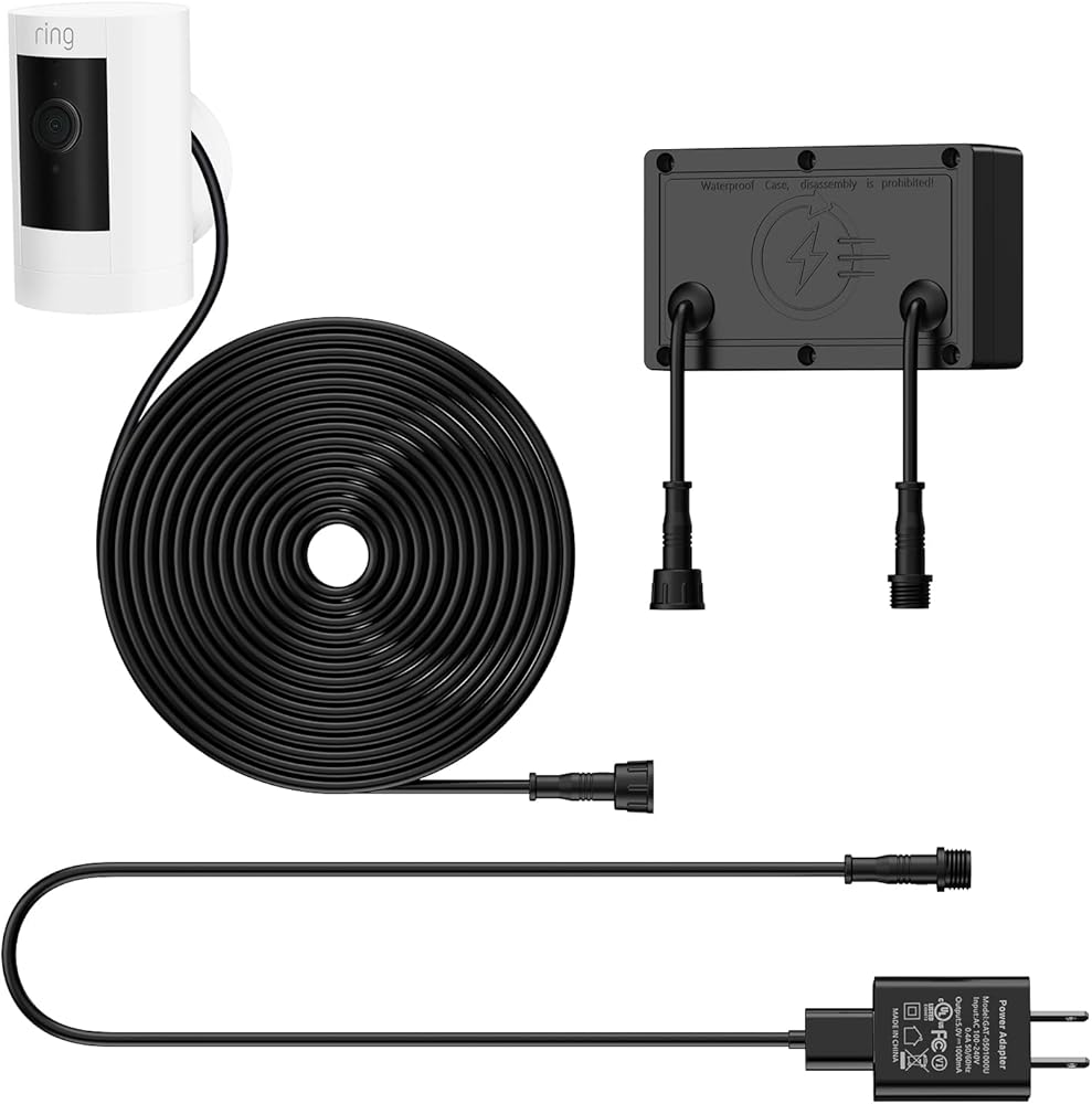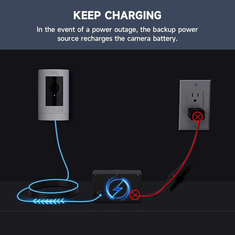 محول طاقة Ayotu لبطارية كاميرا Stick Up Cam/الجيل الثالث/الجيل الثاني وبطارية كاميرا Spotlight، مزود طاقة احتياطية 3000 مللي أمبير مع كابل شحن (لا يشمل الكاميرا)، أسود (16 قدم/5 متر)