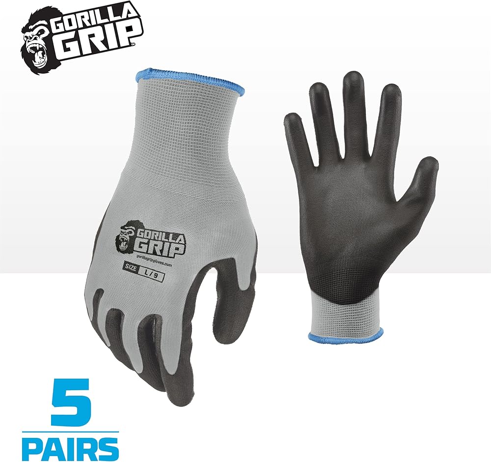 • قفازات العمل المقاومة للانزلاق لجميع الأغراض من غوريلا جريب | الحجم: كبير | عبوة من 5 أزواج من القفازات