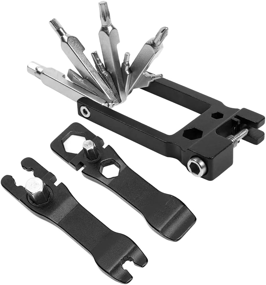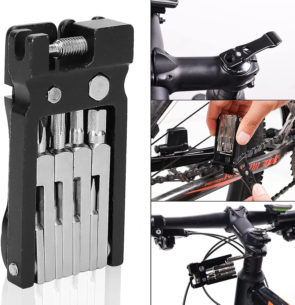 الاستخدام العملي: يمكن لمجموعات إصلاح الدراجات اليدوية لراكبي الدراجات، وكذلك كأدوات إصلاح منزلية يومية، القيام ببعض أعمال الصيانة الأساسية. يمكنك تفكيك سلسلتك القديمة بسهولة، فهي تحتوي على نوعين من الحجم يشمل سلسلة واحدة (1/2 بوصة × 1/8) وسلسلة دراجات متعددة السرعات 5-8 (1/2 بوصة × 3/32 بوصة)، يرجى التأكد من حجم سلسلتك والملعب قبل استخدامه.