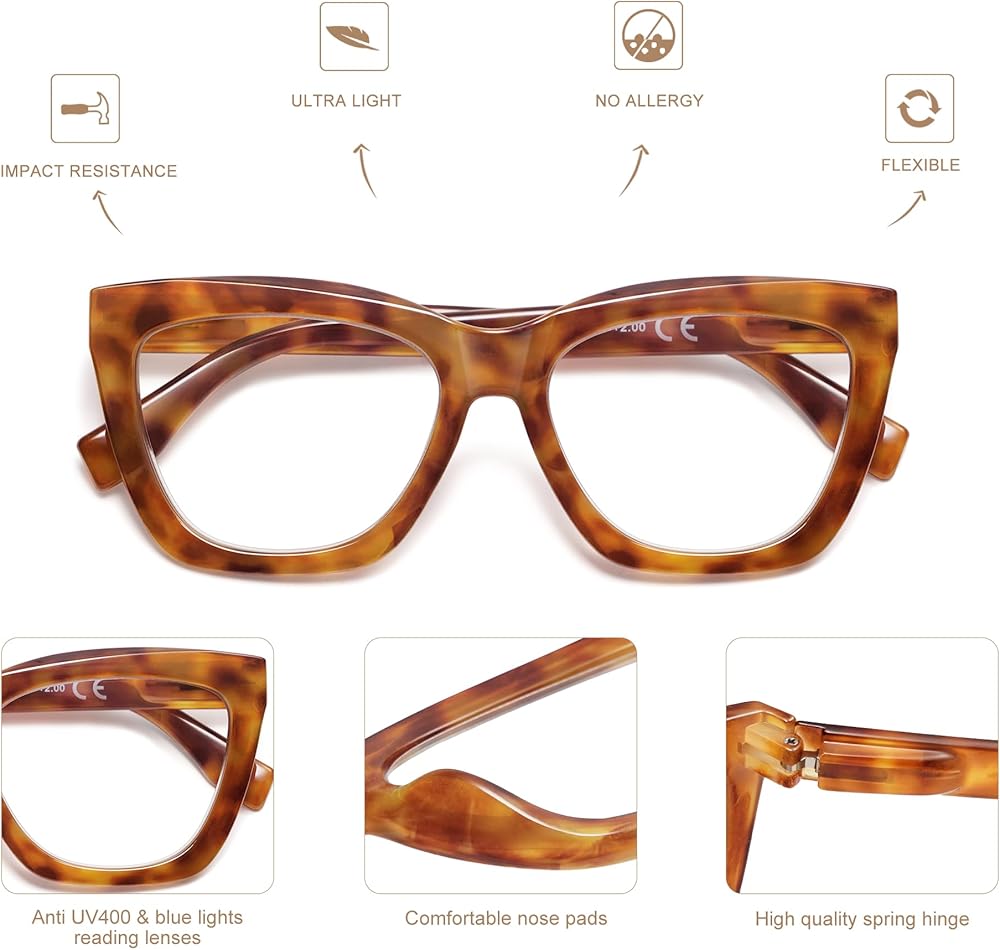 عدسات قراءة مضادة للضوء الأزرق - يمكن للعدسات المضادة للضوء الأزرق أن تمنع أضرار الضوء الأزرق الضارة الناتجة عن الأجهزة الرقمية وتحميك من الشعور بالدوار بعد ارتدائها طوال اليوم في المكتب.
