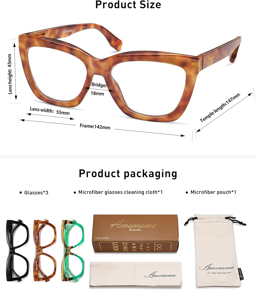العبوة - نظارات قراءة تحجب الضوء الأزرق، قطعة قماش لتنظيف النظارات من الألياف الدقيقة*1، حقيبة جلدية*1، صندوق مصمم بشكل جميل*1