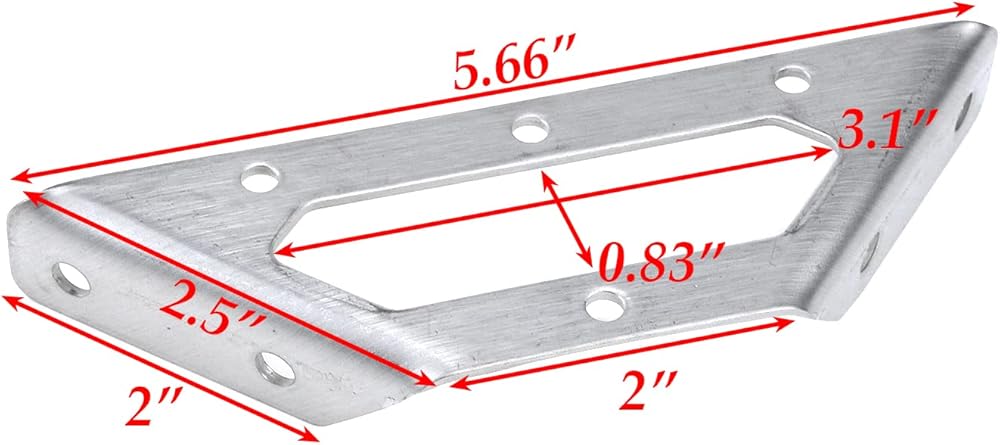 [Sizes] Bracket Side Length: 2.5in; Hypotenuse Length: 5.66in.
