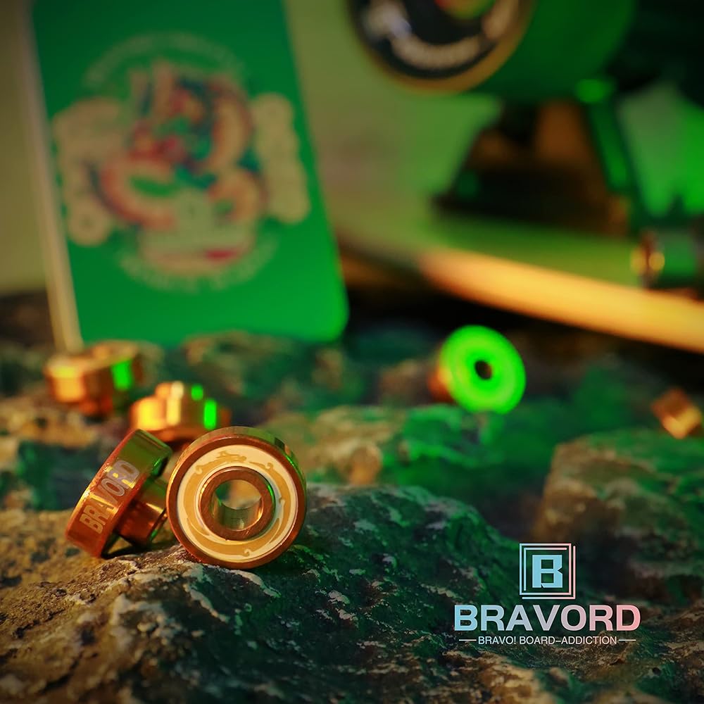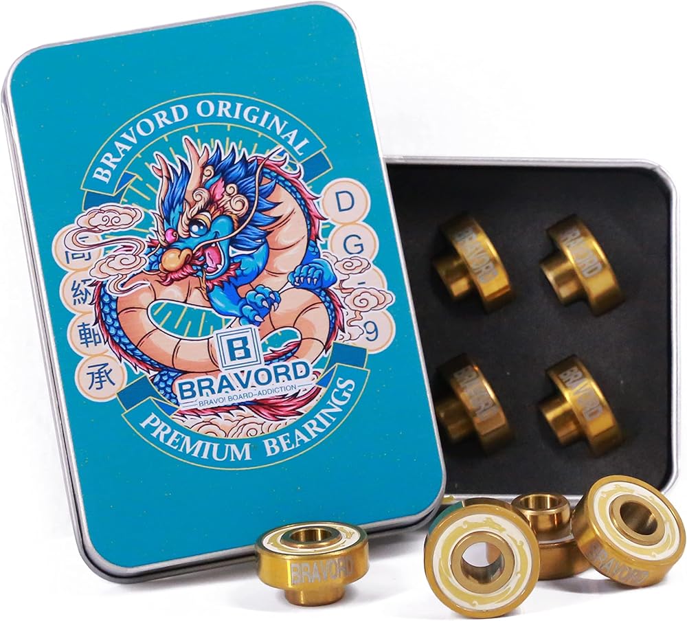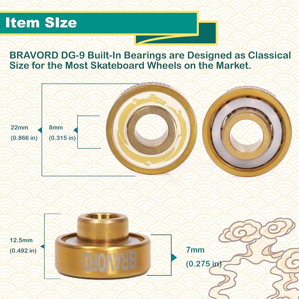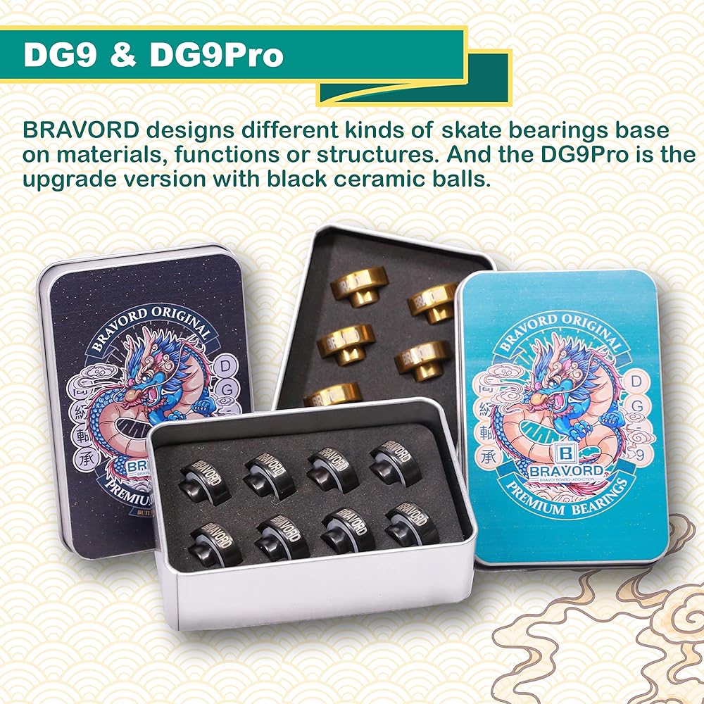 محامل لوح التزلج DG9 مع فواصل مدمجة، محامل طويلة ممتازة للتزلج المضمن والأسطواني (عبوة من 8)