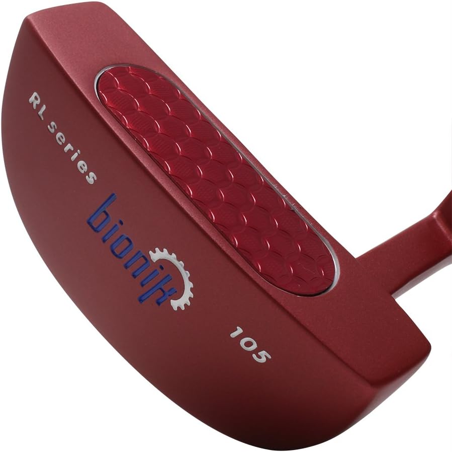 The Bionik 105 Semi Mallet Putter has a perfect alignment system that will help you sink more putts. The rear of the putter head is weighted to a precise measurement to help increase MOI (Moment of Inertia) reducing miss-hits. You will also get a smooth forward spinning ball at impact with reduced skid giving you stability in your putting game. Our premium grip assures a non-slip surface pattern for maximum comfort, playability, consistency and confidence. Get ready to reduce your score for the round with the Bionik 105 Semi Mallet Putter.