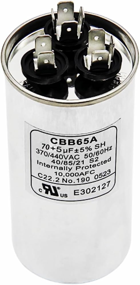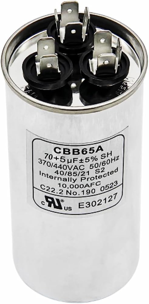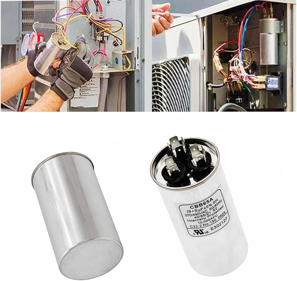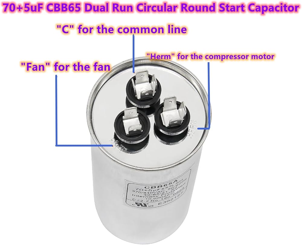 [اسم الجزء]: Yhoparts 70+5 MFD 370/440VAC CBB65A مكثف محرك مستدير مزدوج التشغيل. مناسبة لمكيفات الهواء والضواغط والمضخات الحرارية ومحركات مروحة المكثف.