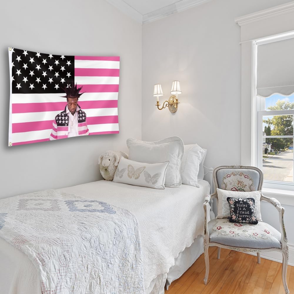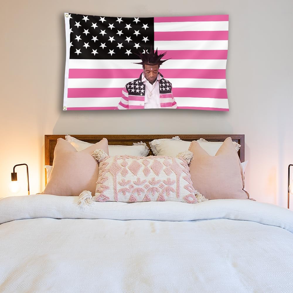 GEPAS BIVEE العلم الأمريكي نسيج العلم الوردي ليل مغني الراب عوزي العلم غطاء ألبوم الموسيقى نسيج لغرفة النوم غرفة المعيشة كلية النوم رجل الكهف ديكور المنزل