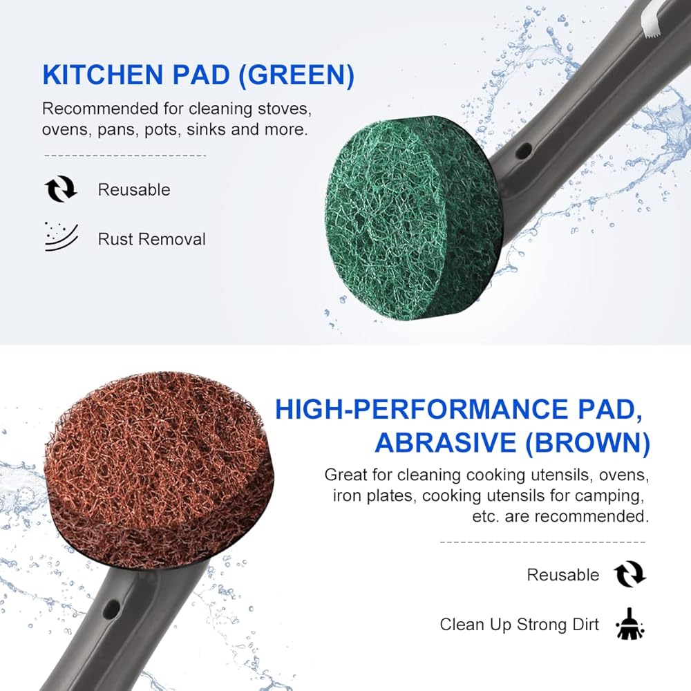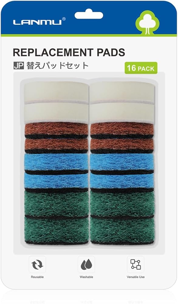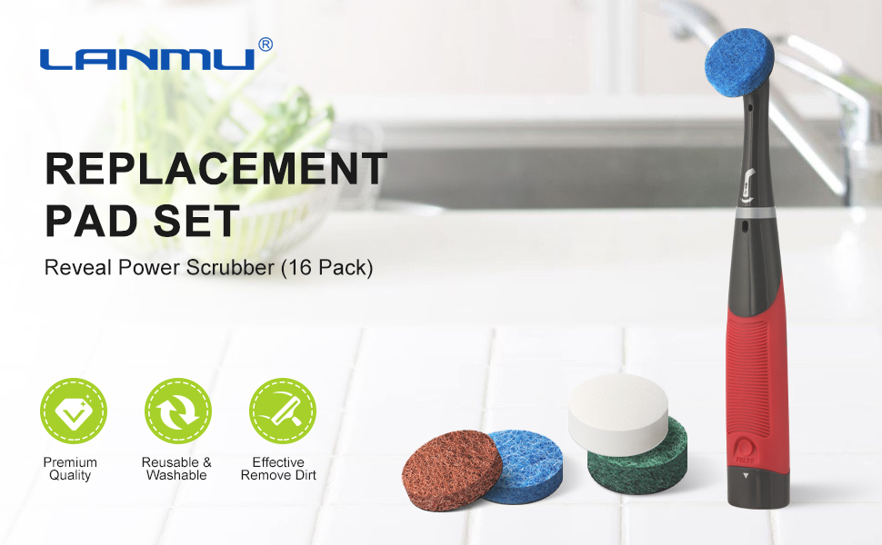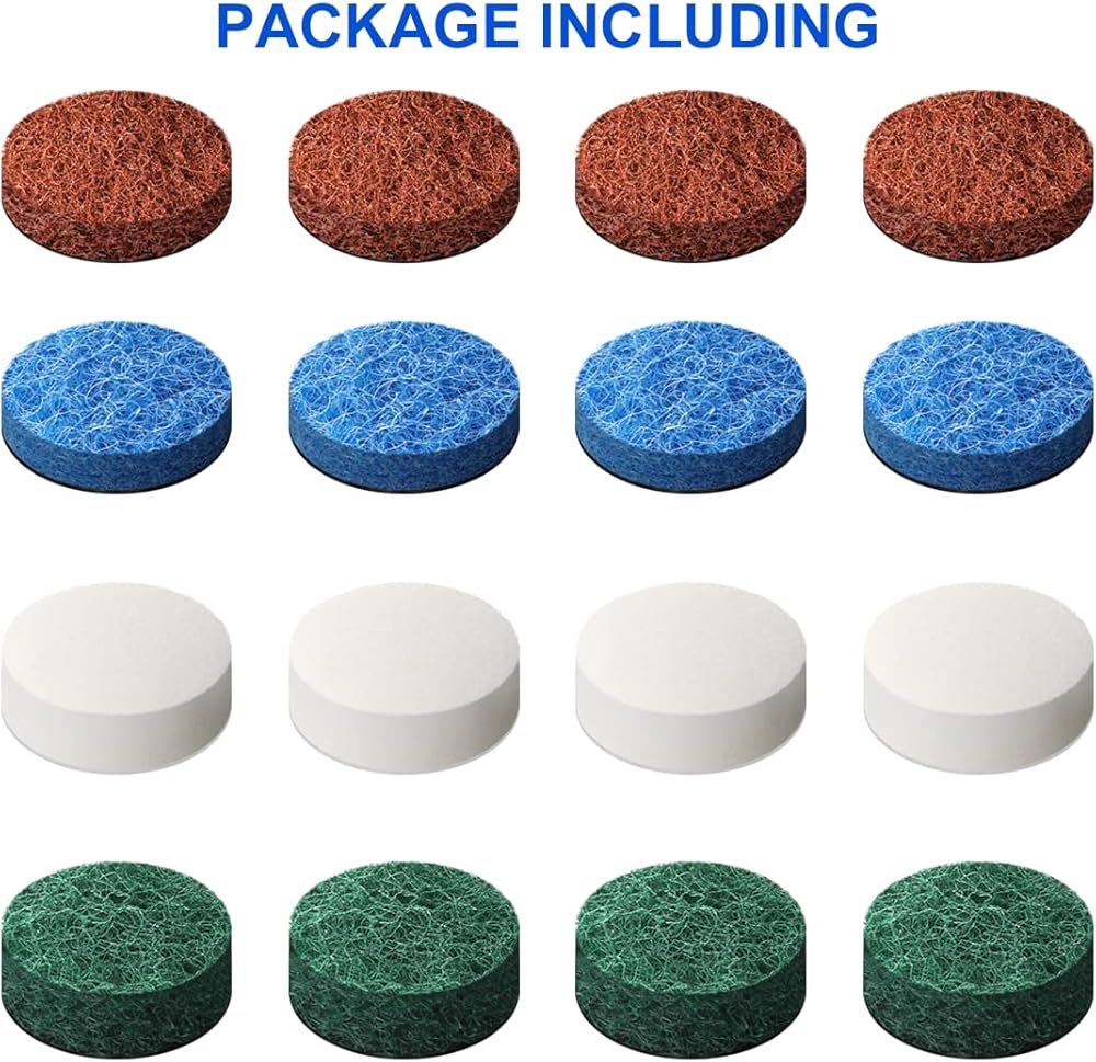 محتويات العبوة: يأتي الإجمالي مع 16 قطعة من عبوات التنظيف البديلة، بما في ذلك 4 × وسادات مطبخ خضراء، 4 × وسادات إسفنجية إسفنجية بيضاء، 4 × وسادات من الألياف الدقيقة الزرقاء، و4 × وسادات تلميع بنية.