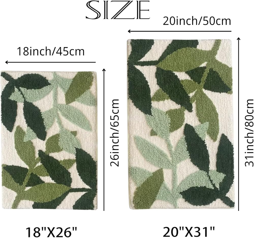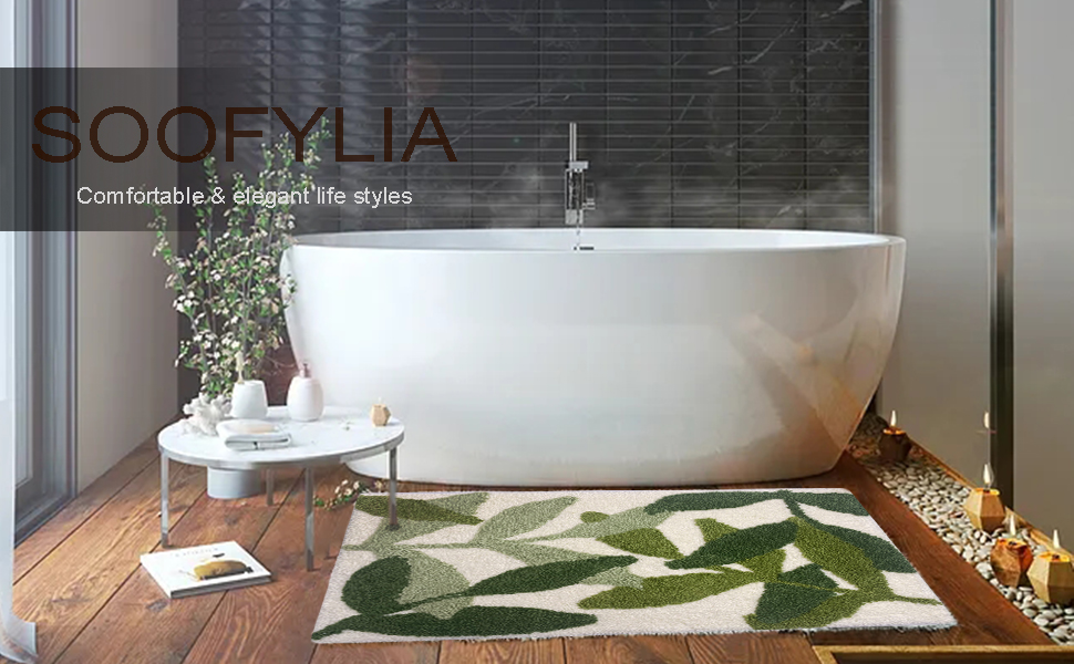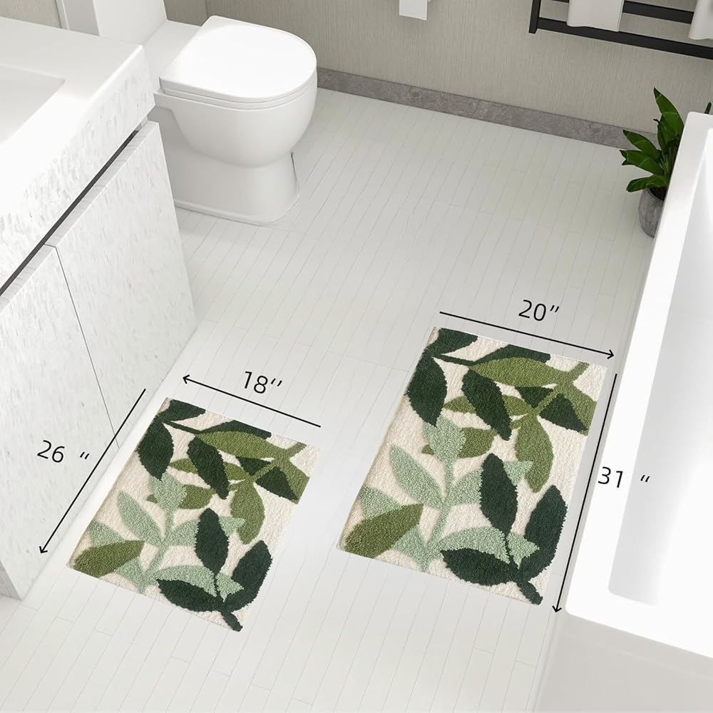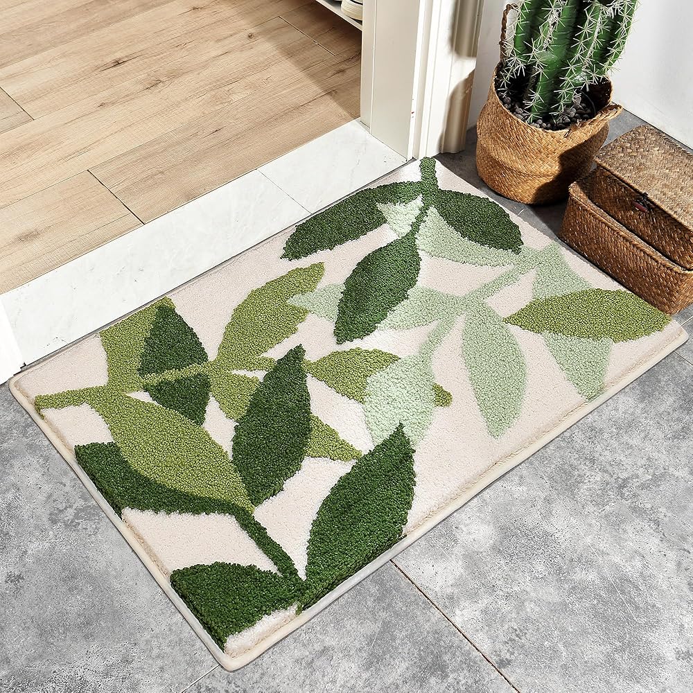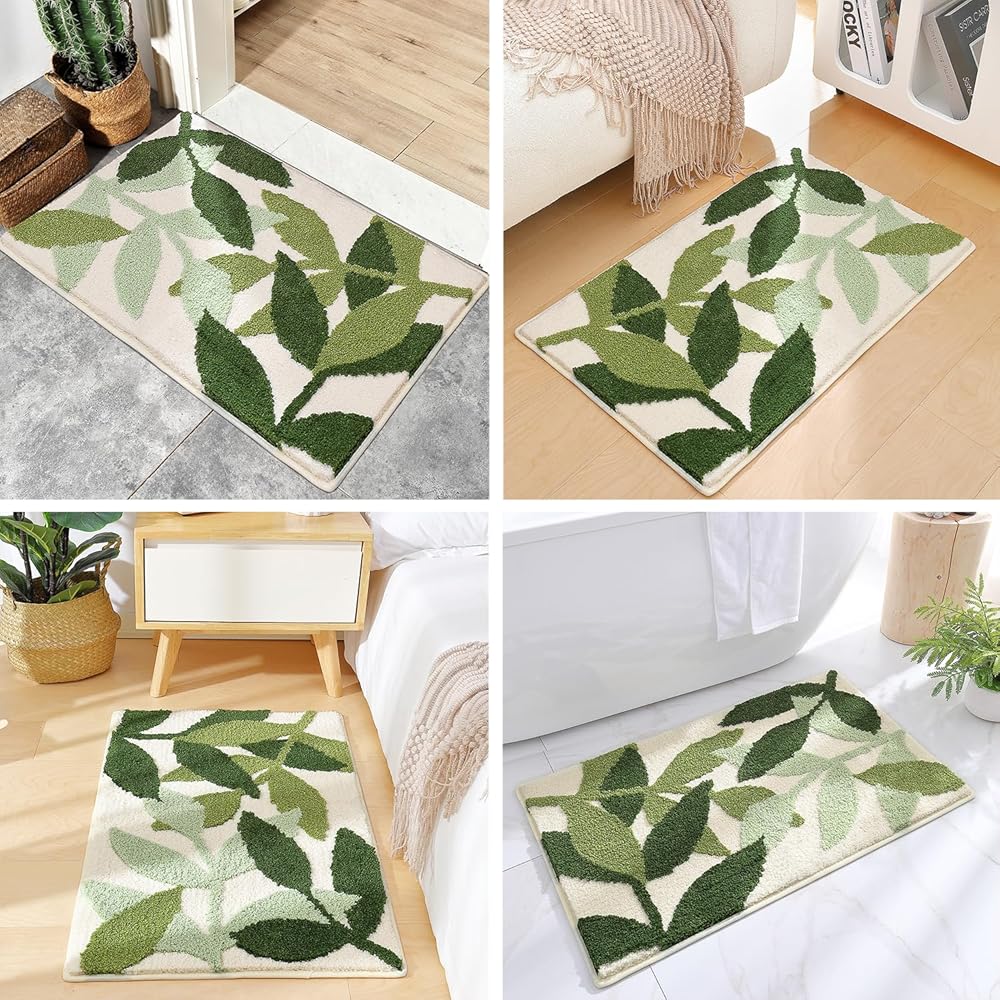 سجاد حمام أخضر متدفق فائق النعومة مقاس 45.72 سم × 66.5 سم، سجاد حمام ماص مانع للانزلاق من الألياف الدقيقة سجادة سميكة لطيفة على شكل نبات لطيف، سجاد حمام قابل للغسل في الغسالة، سجادة أرضية لغرفة الاستحمام في حوض الاستحمام