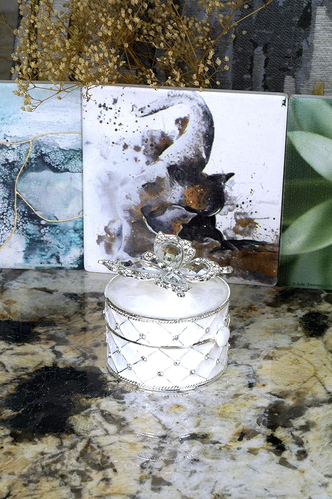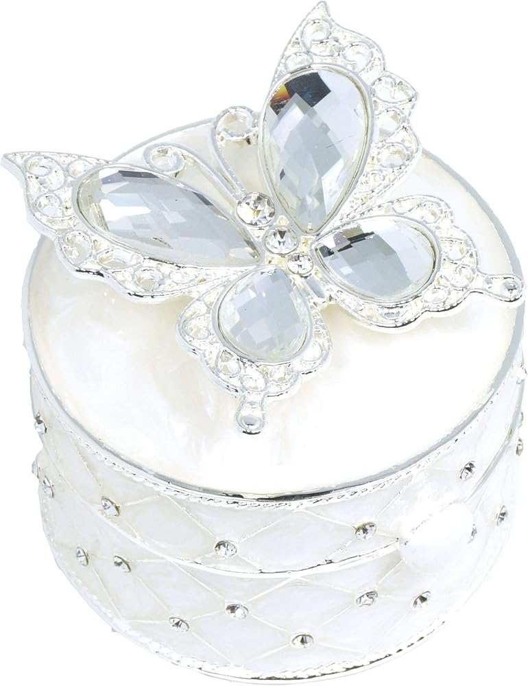 • DECORATED: The jewelry box has a cross pattern on the side, and the butterfly is decorated with large silver rhinestones