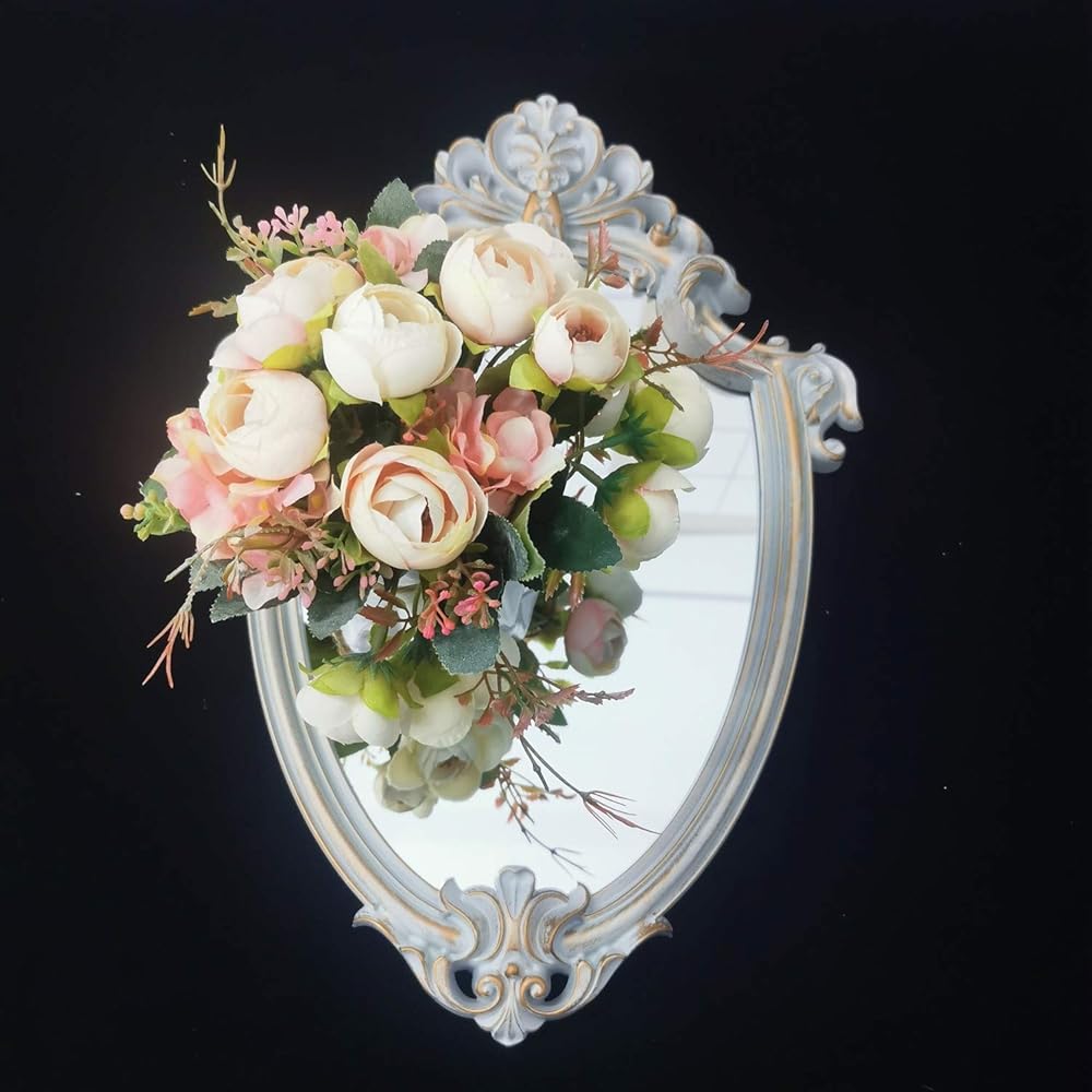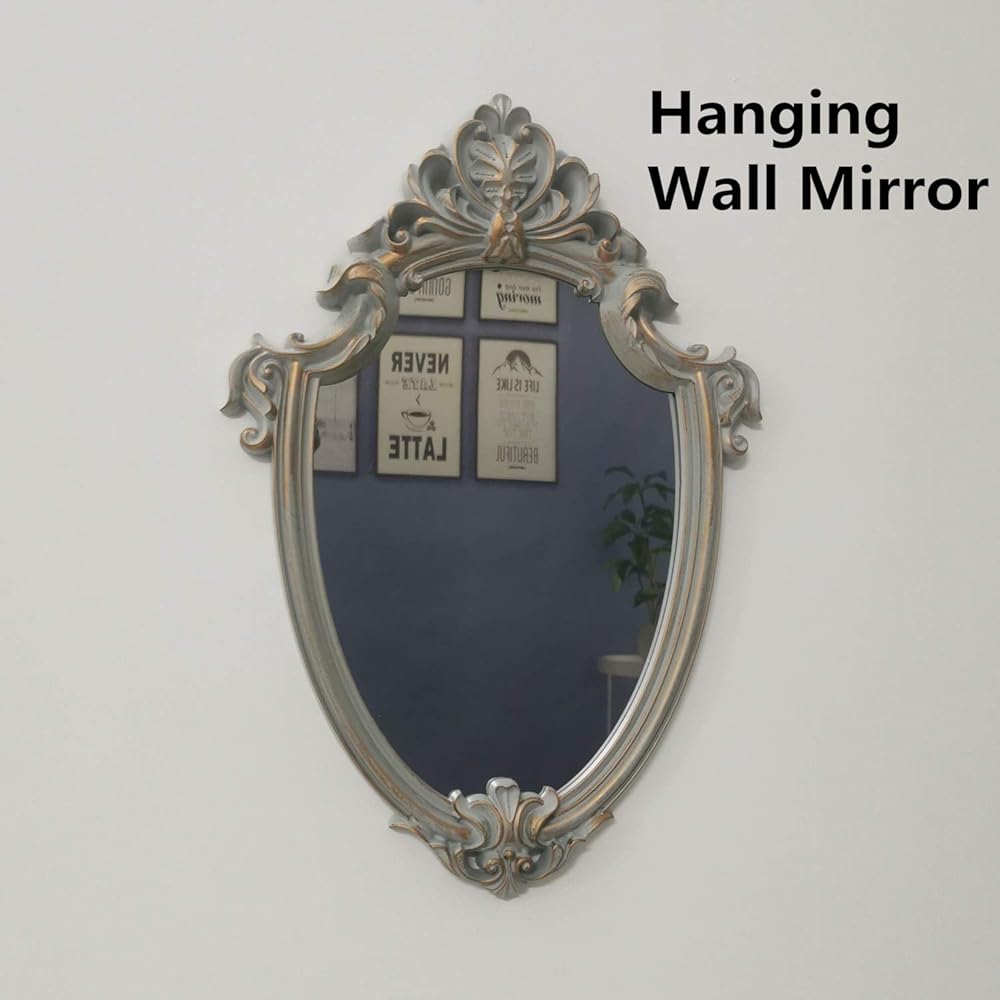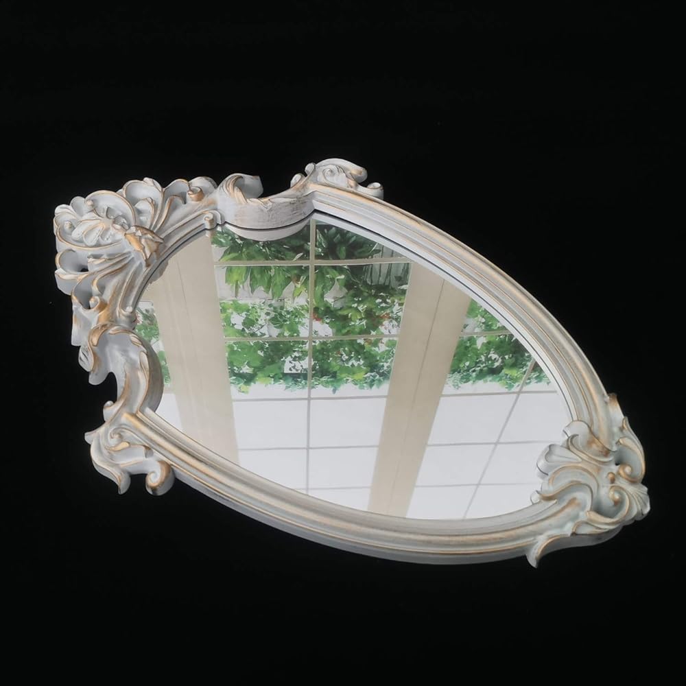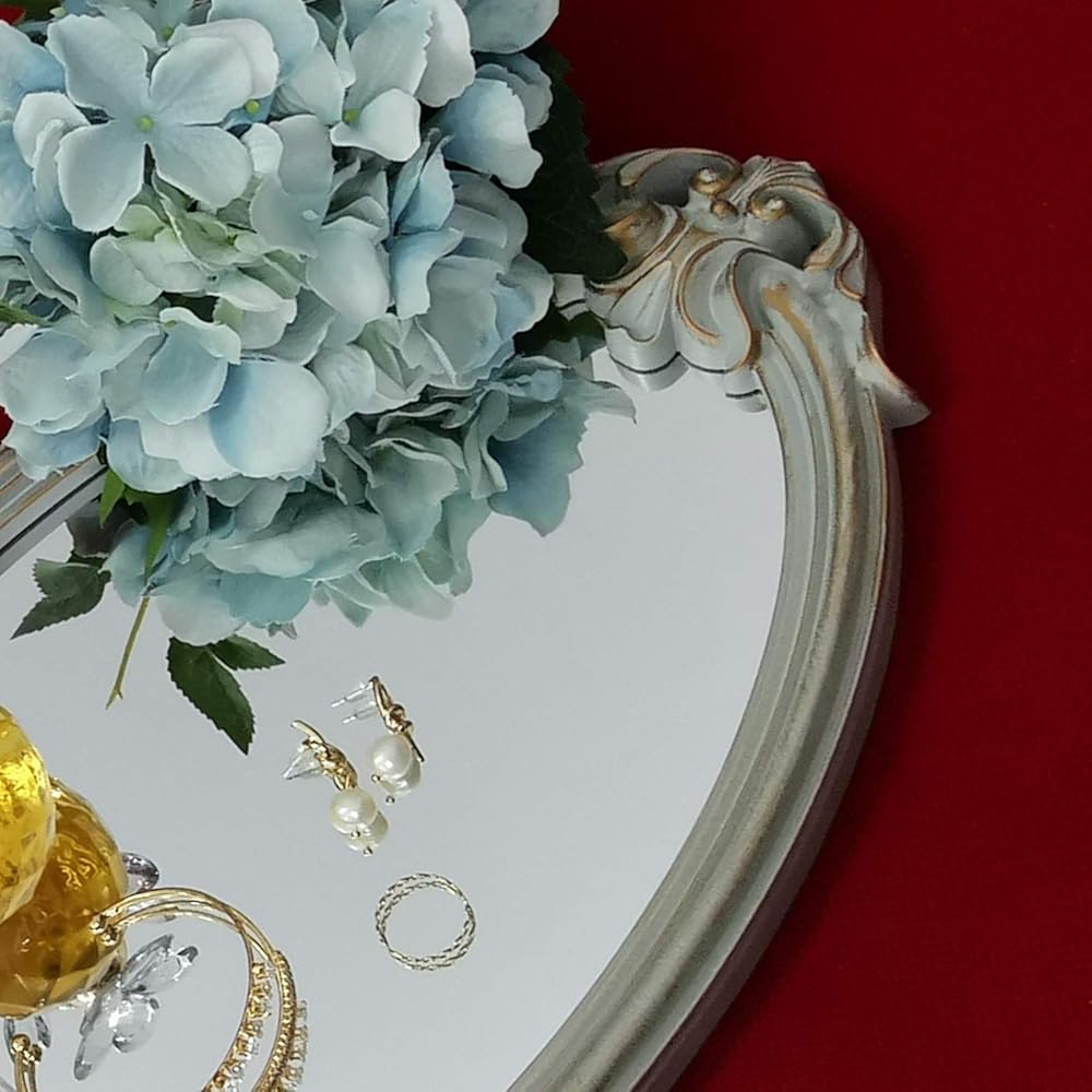• Beautiful Hanging Mirror- Symmetrical arch design, featuring with floral carving looks like French style, make it goes well with any antique and modern home decor. Hanging hook is set on its back for easy set up.