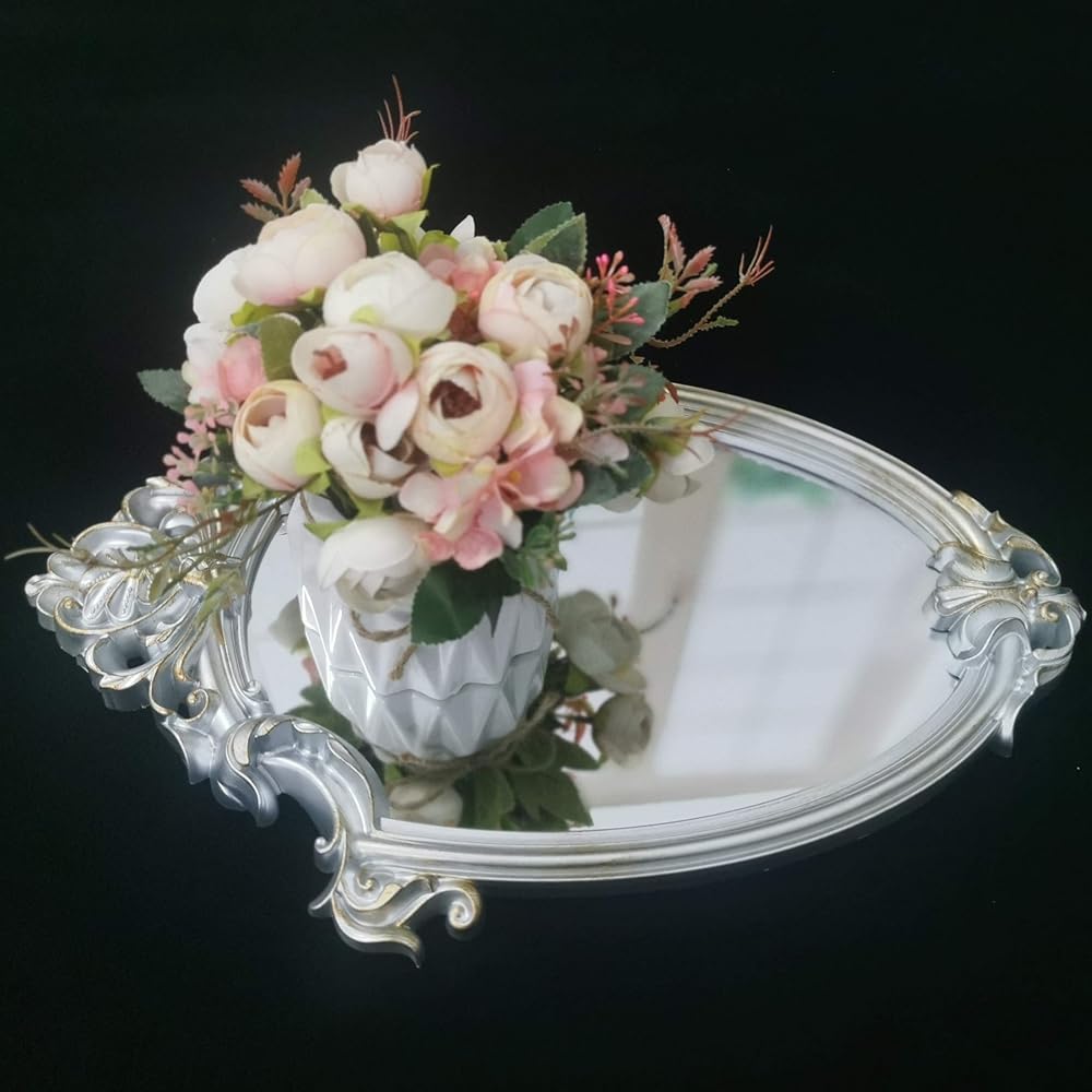 This French style mirror tray with delicate floral and color will perfectly match with any desktops and showing your things in a delight impression.