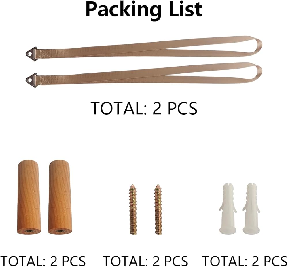 【Packing List】 You will receive two sets of surfboard wall brackets, including two wall brackets and two hanging display belts, as well as small parts needed for installation.