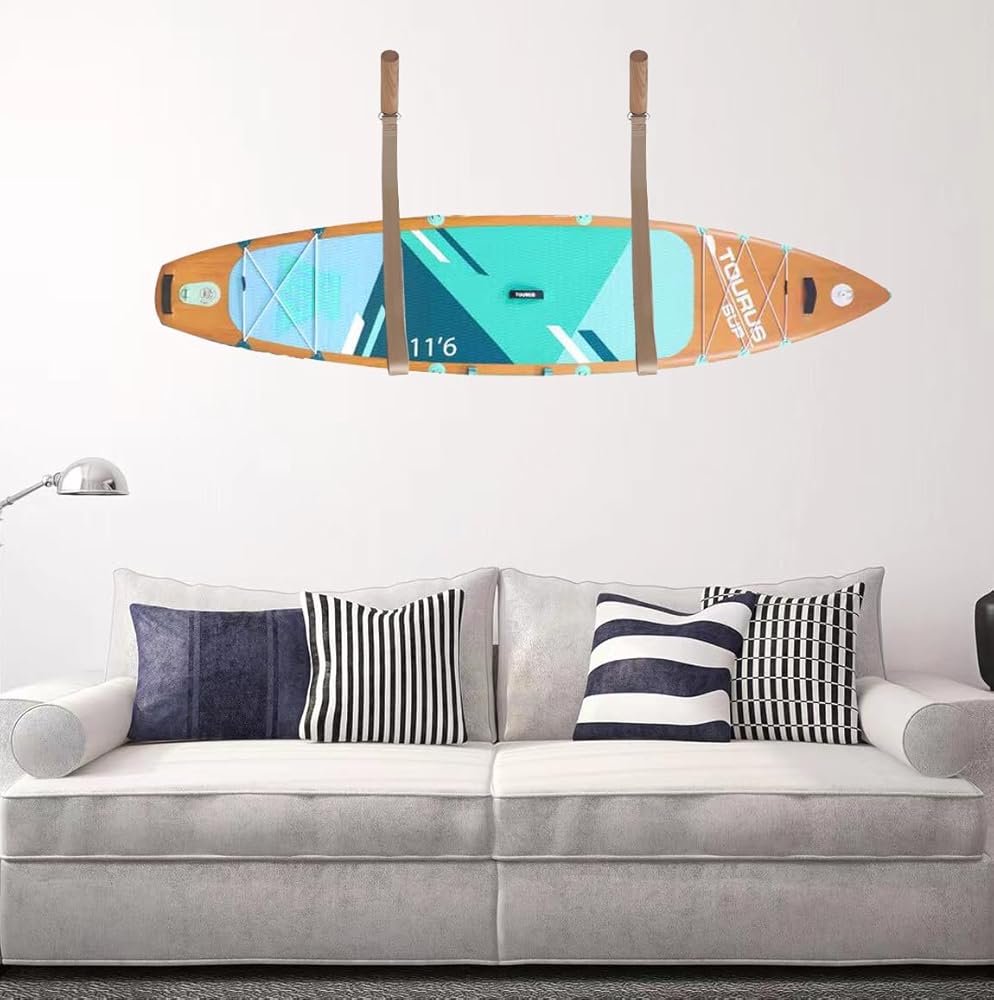 【Universal Design】63-inch suspension belt can accommodate surfboards of any size and type; Whether it's surfboards, snowboards, water skis, kite boards, skateboards or other products, our wall brackets are a perfect match and an ideal choice.