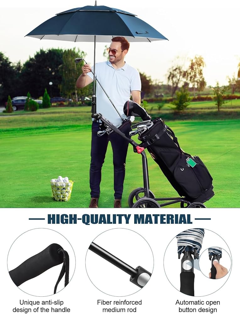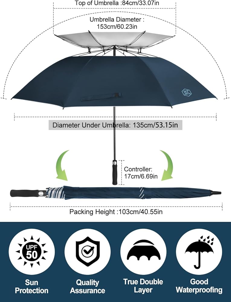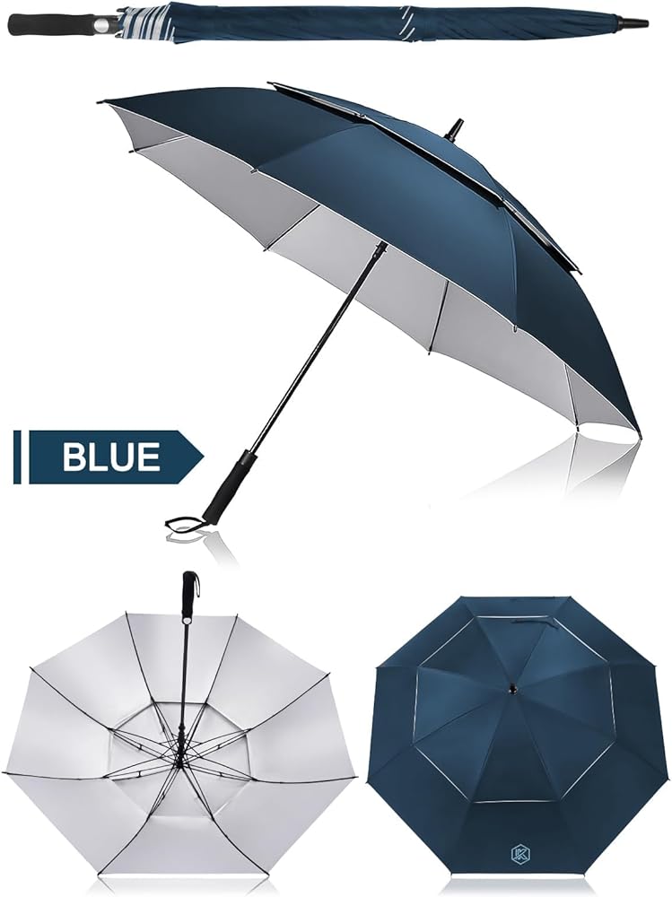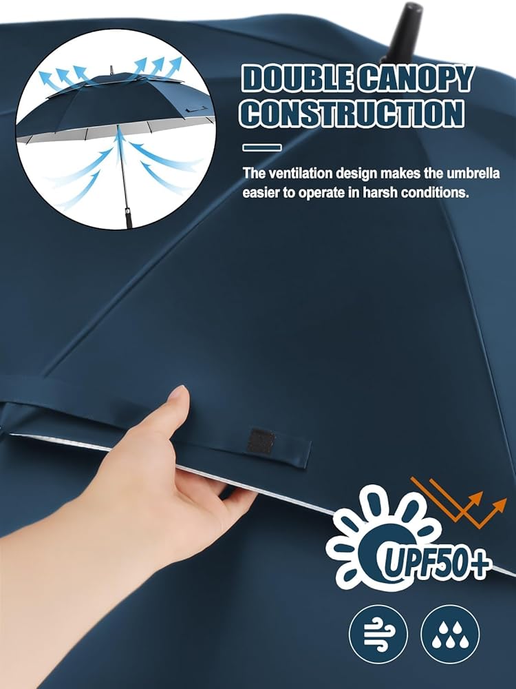Kalolary UPF 50+ UV Protection Compact Golf Umbrella, 68 Inch Extra Large Oversize Double Canopy Vented Umbrella Windproof Waterproof for Men and Women