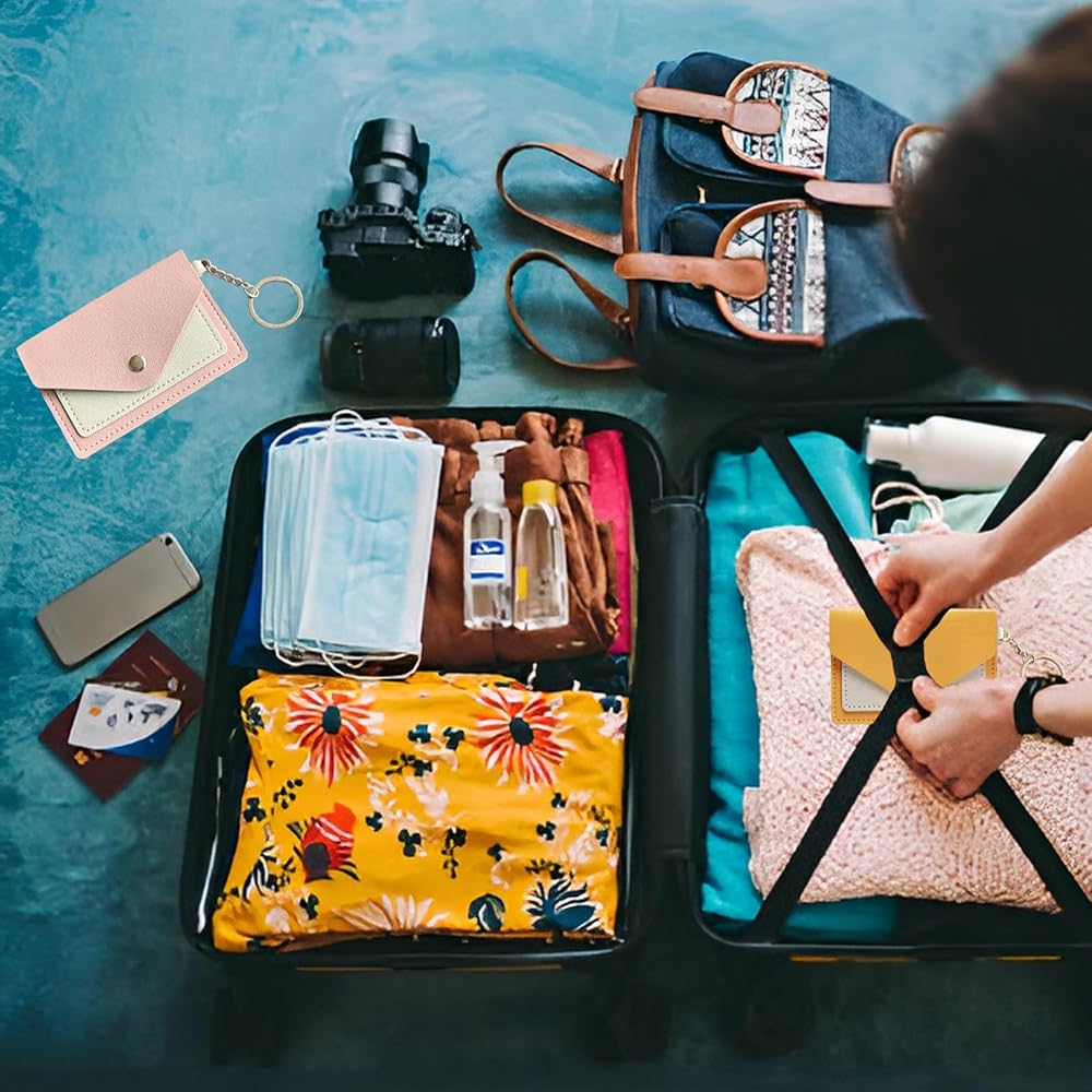 3 عبوات حامل حبوب منع الحمل لطيف مقاس 4.3 × 3 بوصة حامل حبوب صغير للمحفظة من جلد البولي يوريثان، حزمة كم حبوب منع الحمل مع حلقة مفاتيح (وردي، أسود، أصفر)
