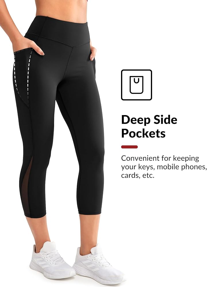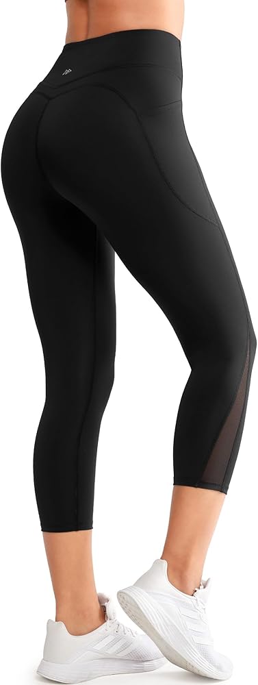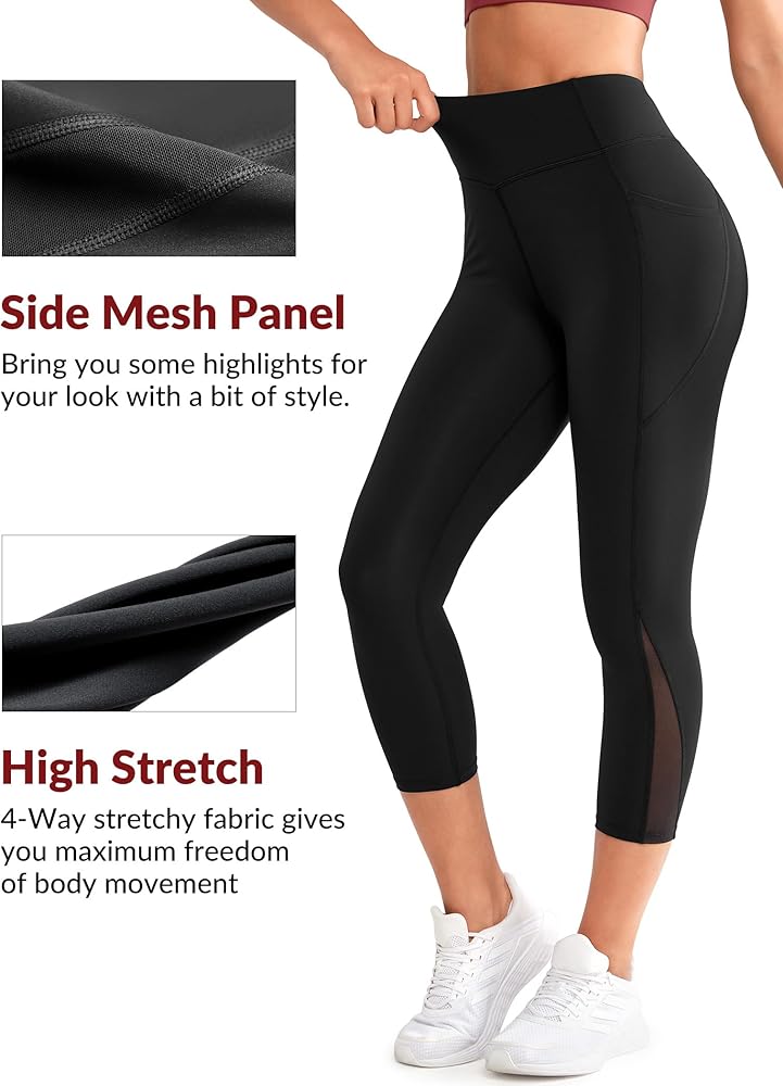 تصميم فريد - تصميم عالي الخصر، حزام خصر مرن مع لوحة جانبية شبكية. يمكن أن تجعل سراويل الكابري نسب الجسم أكثر مثالية، كما أن شكل الورك أكثر تقريبًا.