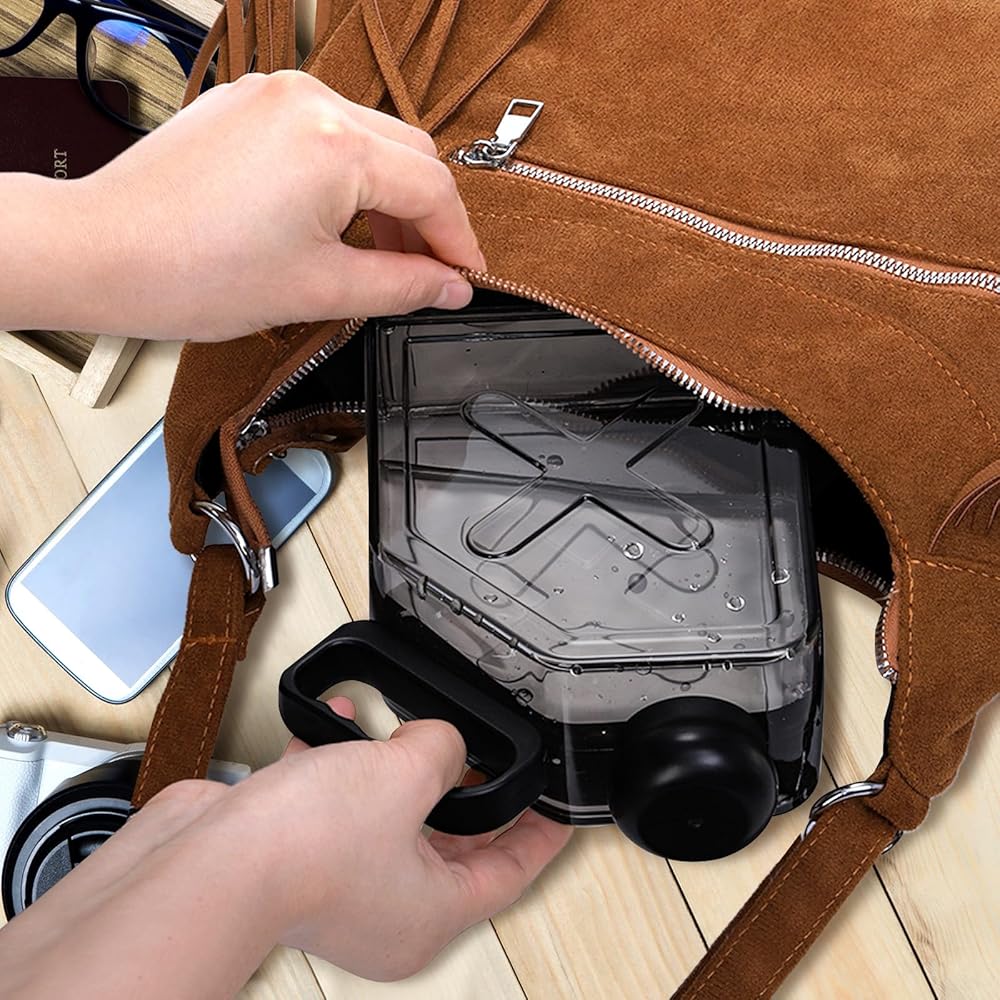 مادة بلاستيكية فاخرة: زجاجة مياه السفر مصنوعة من مادة بلاستيكية عالية الجودة. إنه سميك جدًا ومتين، وليس من السهل كسره عند سقوطه.